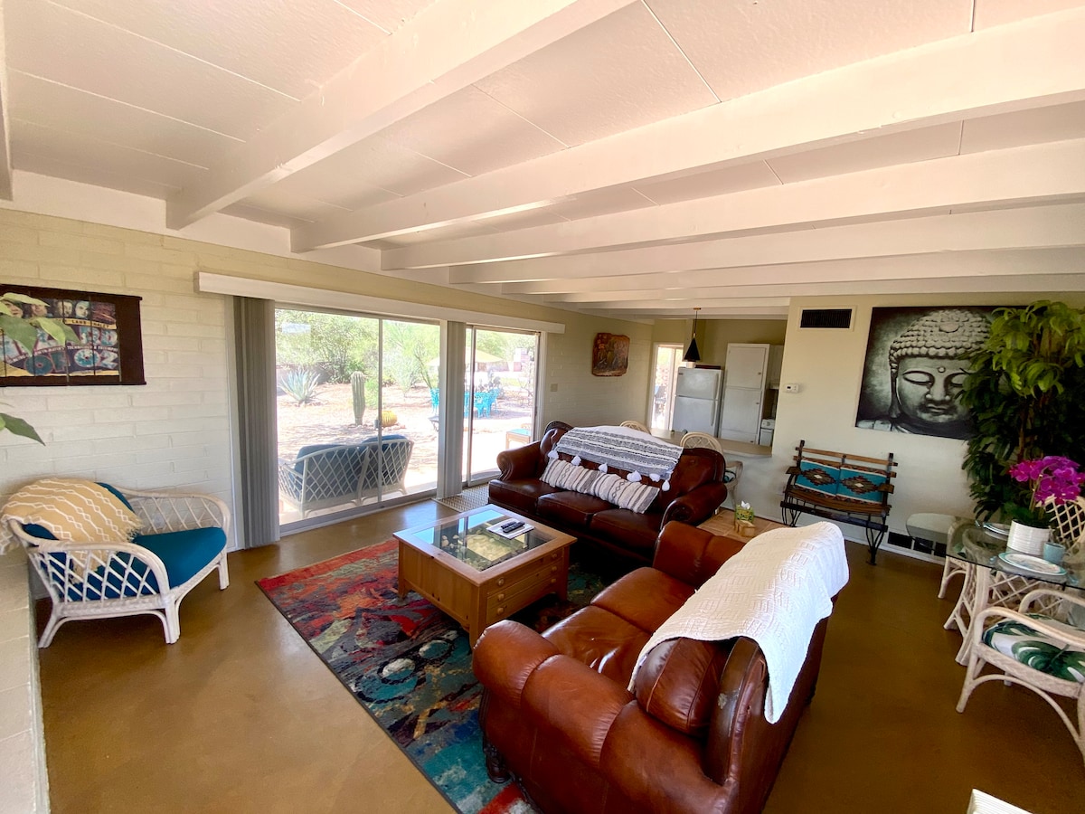Contemporary Casita in Northeast Tucson, adjacent to Saguaro National Park East Located in the heart of the Sonoran Desert, this 1B/1B casita offers stunning mountain views and a peaceful desert setting. Just steps from SNP trails and a short drive to shops, restaurants and bars, it’s the perfect retreat The casita features a new, fully equipped kitchen, BBQ, and private patio with a telescope for stargazing. The cozy bedroom includes a queen-size bed and climate control for ultimate comfort