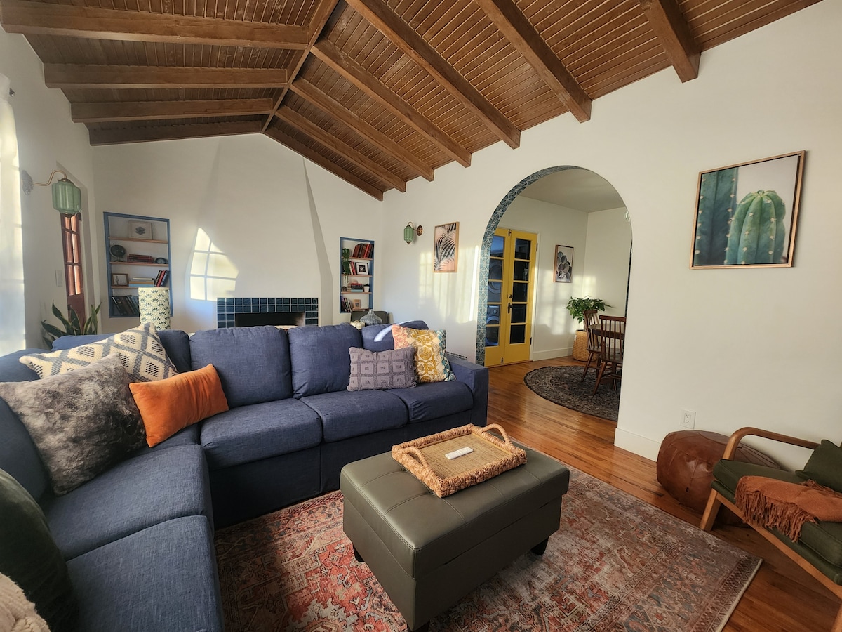 This unique, spacious, updated & authentic adobe is located in the historic Barrio Viejo of Tucson, nestled between downtown and Five Points. This desert Adobe has been abandoned since the 1970’s, but is now revitalized with new amenities, exposing the beautiful adobe walls and preserving the original ceilings. The fully stocked kitchen includes a gas range, dishwasher and granite countertops. Enjoy the smart TV in both the bedroom and living room. King size bed in bedroom