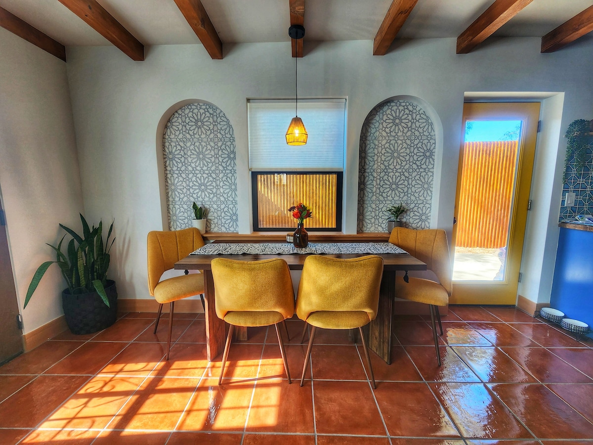 This home is located in Historic Barrio Hollywood, one of tucson's oldest neighborhoods. 5 minutes from Downtown Tucson, 7 minutes from the university, within easy walking distance of the River "Loop" bike path and right off I-10 for easy travel. This minimalistic Casita is ideal for the smart traveler. Equipped with a laundry center, induction cooktop/ kitchenette, dedicated workspace and an expansive backyard; this space provides every necessity for a comfortable stay in our charming city.