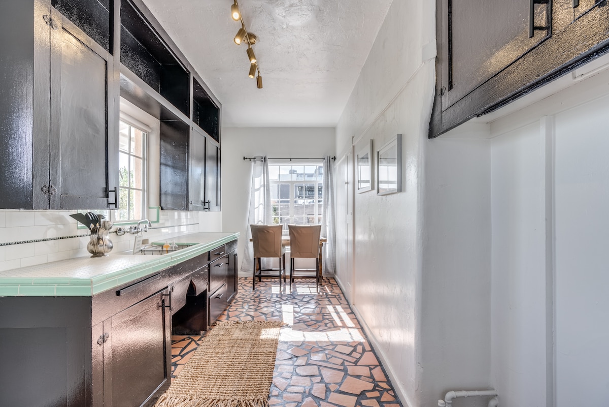 This unique, spacious, updated & authentic adobe is located in the historic Barrio Viejo of Tucson, nestled between downtown and Five Points. This desert Adobe has been abandoned since the 1970’s, but is now revitalized with new amenities, exposing the beautiful adobe walls and preserving the original ceilings. The fully stocked kitchen includes a gas range, dishwasher and granite countertops. Enjoy the smart TV in both the bedroom and living room. King size bed in bedroom