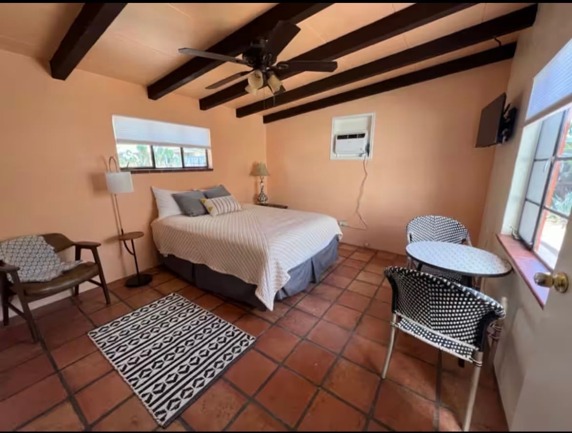 Midtown Historic 1946 adobe home with vibrant Mexican style colors and decor. Modern amenities including ductless ac/heat, and full kitchen with new appliances. Cal king bed and two twin beds all w/ memory foam. TV’s in all rooms. Board games and some DVD’s provided. Unique outdoor bathroom IS the second bathroom. Plenty of parking space for RV or trailers. Sorry, no weddings or events. Arizona TPT License # 21330071