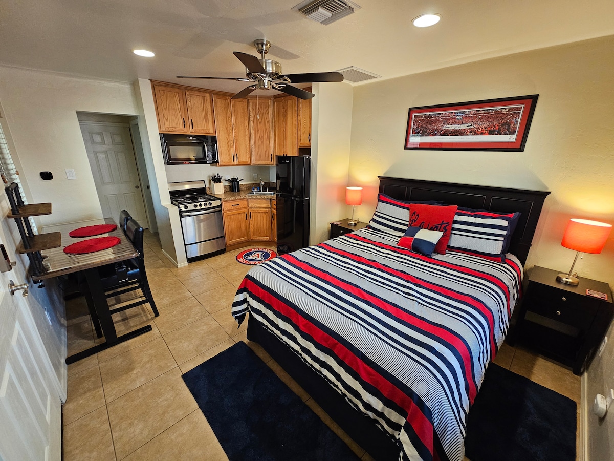 Welcome to our luxurious King Suite Guest House in the heart of Tucson! This beautifully furnished retreat offers a spacious floor plan with a brand new king-size bed, a relaxing living area, a dedicated work space, and a fully equipped kitchenette. Centrally located, you're just 15 minutes away from downtown Tucson's vibrant scene and surrounded by scenic desert landscapes. Immerse yourself in comfort and convenience for an unforgettable Tucson getaway. Book your stay now!