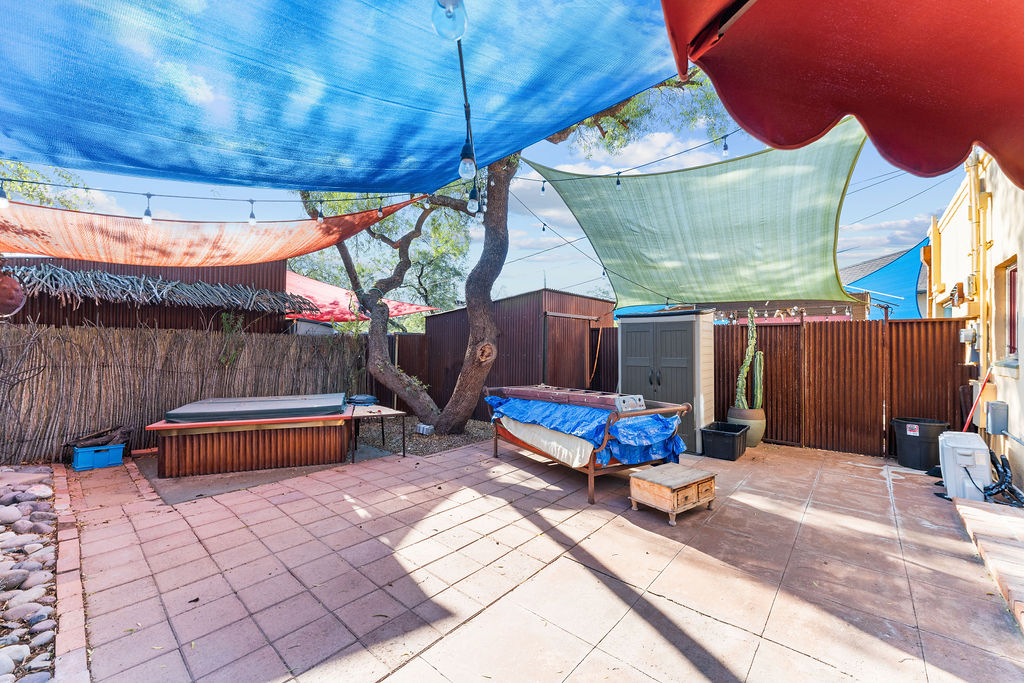 A Hidden gem in Tucson! The house is a classic adobe style Santa Fe Style Home. Enjoy all of the comforts of home, relax in the beautiful, secluded, fully fenced in back yard with a private hot tub and pool. The dining area can seat up to 8, the kitchen is fully stocked with all of the essentials. There is a small and functional office area with a printer and paper, and a laundry room. There are 3 comfortable bedrooms with smart TVs, fast internet, high quality bedding and ceiling fans.