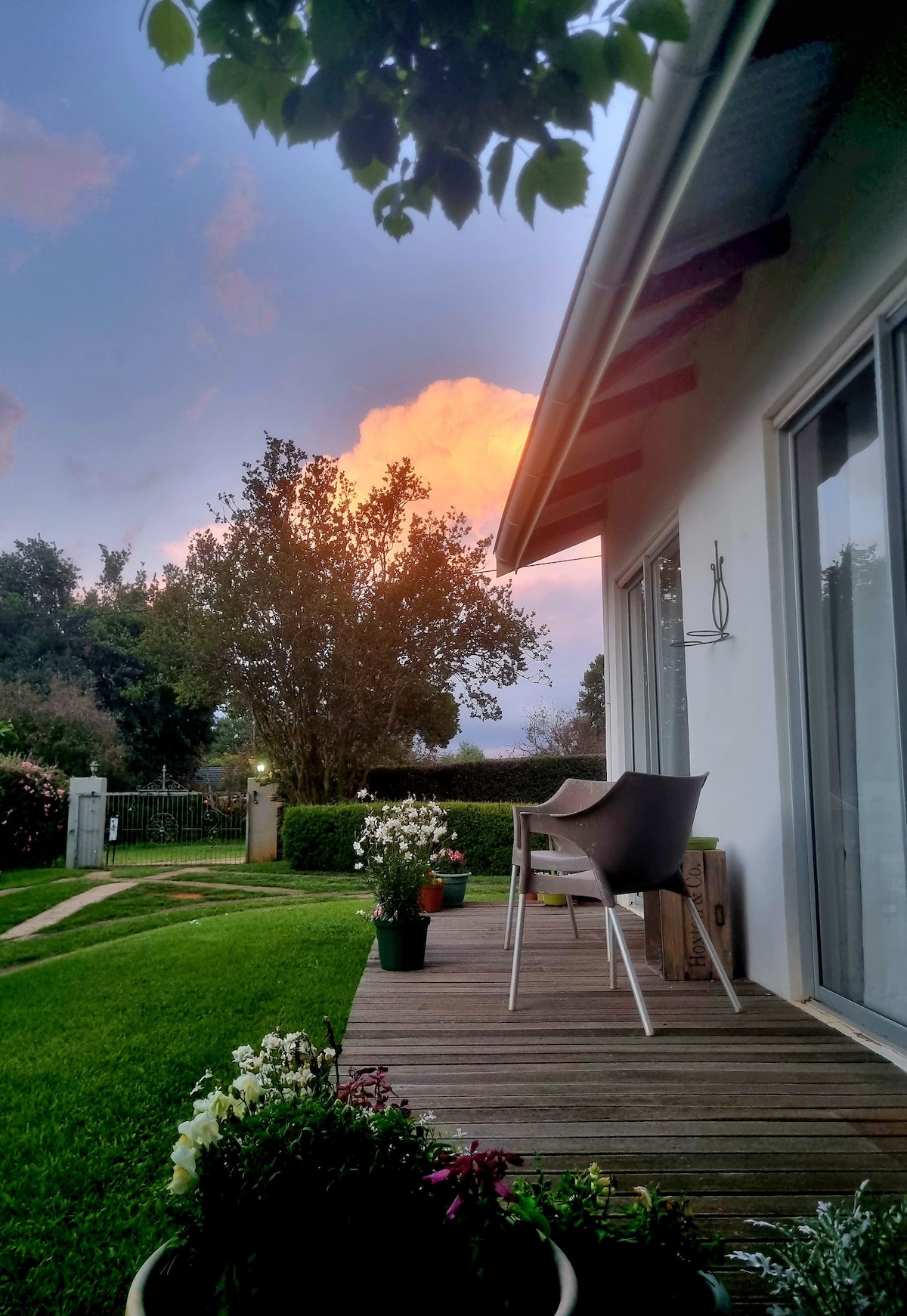 Luxury 2bed 4sleeper unit in a farm estate, generator, free parking, 24/7 security guard, in-unit alarm system, free WiFi, fireplace & aircon, BREAKFAST. Onsite fine dining chef, laundry and staff. Big entertainment lounge with a bar, 2 large fireplaces, aircons, 4 lounge areas each with smart TV for your favorite sport or programme, dining, all leading to a lavish patio. Music, JBL surround speakers in both the hall & patio. Motorized laser projector screen. Perfect 4 functions or conferences.