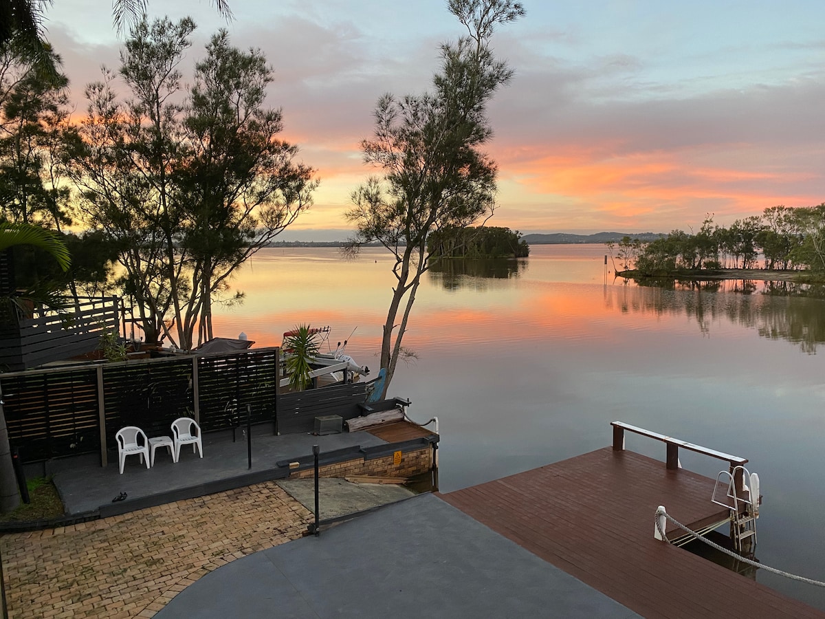 Lakefront with spectacular views Up to 6 guests with 3 bedrooms. King suite with ensuite and 2 Queen rooms, all with built in wardrobes. Stunning private rooftop terrace with spectacular views and 7 seater spa for your private use only. Access to the resort pool and games room. Easy access and only 90 minutes from Sydney Walk to the beach (great surfing), park with bike and walking trails, restaurants/cafes and shops. Close to 3 golf clubs (Magenta Shores, Shelly Beach & Tuggerah Lakes)