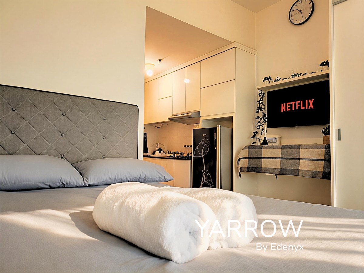 Unwind in this stylish, light-filled apartment designed for comfort. Stream your favorite shows on the Smart TV with Netflix, stay connected with fast Wi-Fi, and cook with ease in the kitchen equipped with basic utensils. Perfect for relaxing, working, or exploring the city’s gems. Note: Paid parking 5k/hr max 30k/ night Pengiriman foto identitas diperlukan untuk verifikasi ke pihak gedung