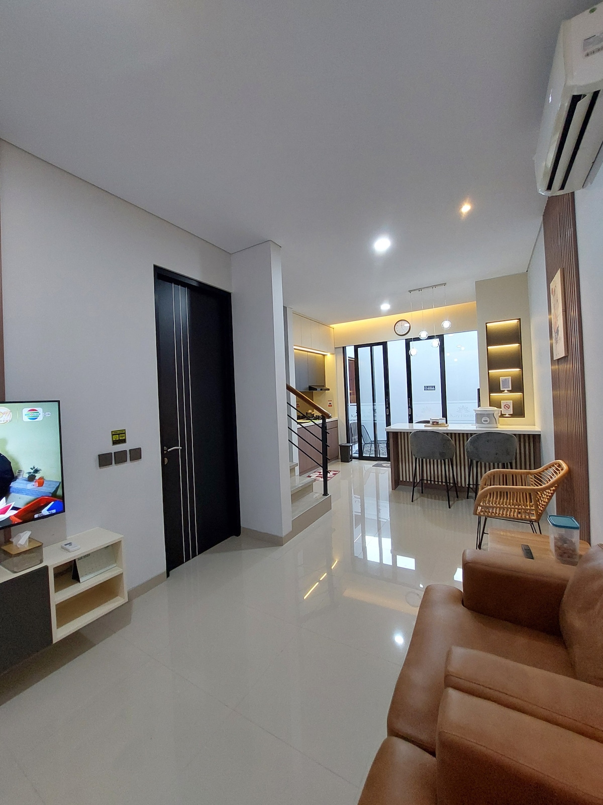 Casalista House: Modern Oasis in the City Kamar 1 (lantai 1): 2 kasur ukuran 140x200 (muat 4 orang) Kamar 2 (lantai 2): 1 kasur ukuran 200x200 (muat 2 orang) Kamar 3 (lantai 2): 1 kasur ukuran 140x200 (muat 2 orang) Escape to our stunning 2-story minimalist home, nestled in a quiet gated community. Our beautiful garden creates a fresh and peaceful atmosphere, making it an ideal retreat for families, friends, and couples.