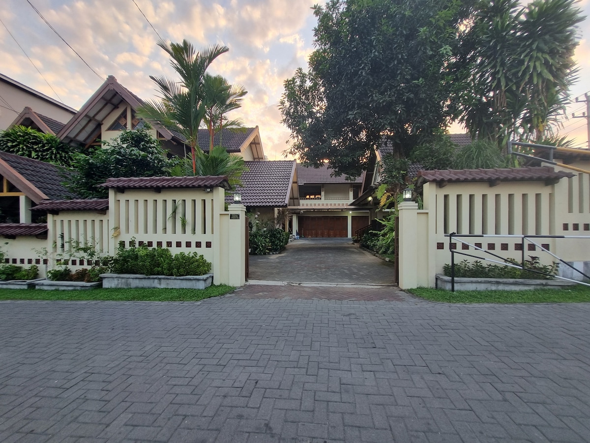 Ndalem Prabawan Private Villa is located in a quiet and comfortable area. Spacious villa with fresh air, spacious and comfortable rooms. Equipped with 2 main rooms (Queen bed, AC, water heater) and 1 extra room (single bed, fan, bathroom), family and cozy dining room. Comfort for 8 person A kitchen , including water heater, dinnerware, stove, cooking pot and pans . Washing machine and 1 bike also available for free. Parking space for 5 cars. Ndalem Prabawan, best place for vacation in Yogya
