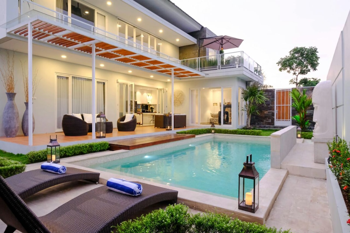 🏡 Private Villa – Entire Property Rental The price shown is for the entire villa, not per room. During your stay, the whole property is exclusively yours — no other guests will be present. With 8 spacious bedrooms, a large pool 15x9 and 1,400 m² of living space, it comfortably hosts up to 20 guests. Only 3 km from town and 20 minutes from Yogyakarta city center, it’s perfect for families, friends, or retreats, surrounded by tropical peace and comfort. 🌴✨