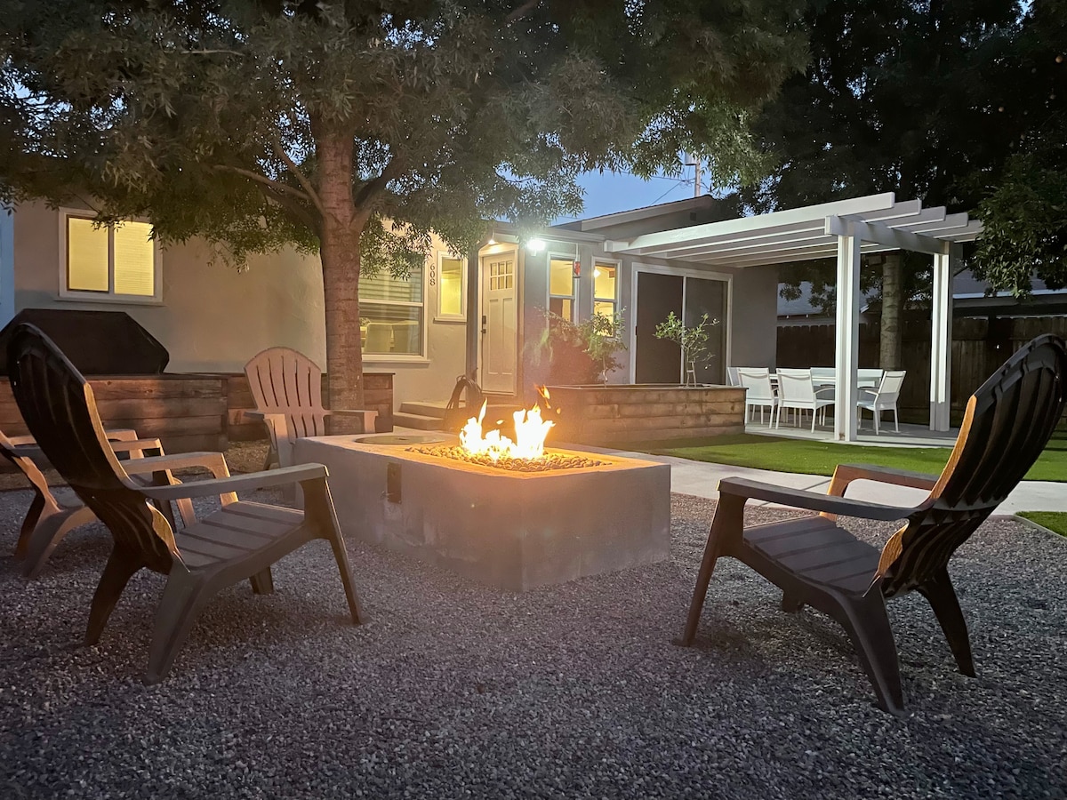 Bearheart Lodge, nestled in Visalia, CA—known as "The Gateway to the Sequoias"—provides the ideal combination of nature and modern comfort. Guests can enjoy the serene, mountain-inspired atmosphere, take a relaxing golf cart ride around the neighborhood, watch a movie in the treehouse, or catch the sunrise from the porch. With thoughtful amenities like an EV charger, everything is designed to promote relaxation. Each moment of your stay is crafted with care, ensuring an unforgettable getaway.