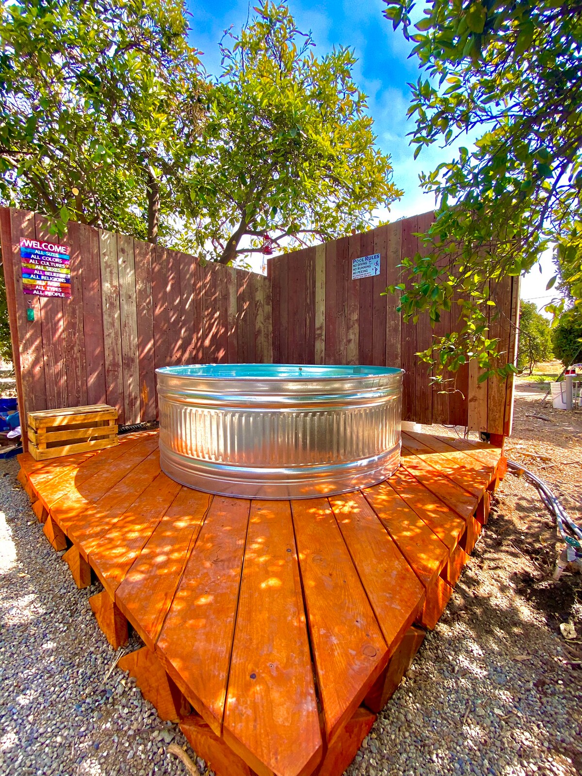 This place really puts the glamorous in glamping! The site is located within an orange grove where you are welcome to pick some oranges for your own enjoyment while on the property. We highly recommend experiencing the stary night sky outside of the city light pollution all while sitting in the warming tub! :)