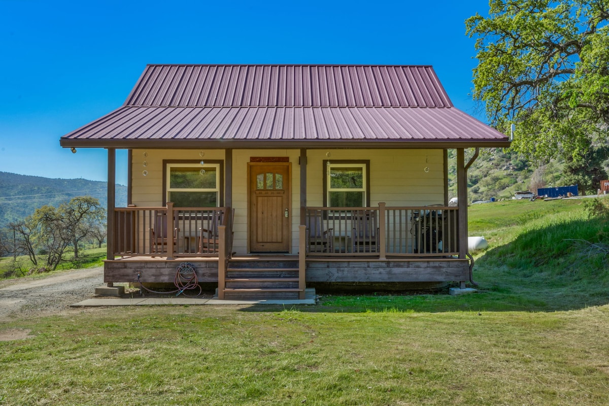 This simple little farm cabin is nestled under Sycamore trees with views of hills and farms. Enjoy the sunset on the porch with a blanket and a glass of wine while watching the horses graze peacefully. On clear nights you can see the North Star and the Milky Way. We are located just one mile away from the artsy village center of Three Rivers and 6 miles from the entrance to the Sequoia National Park. Please don't hesitate to message me if you have any questions. Enjoy your stay!