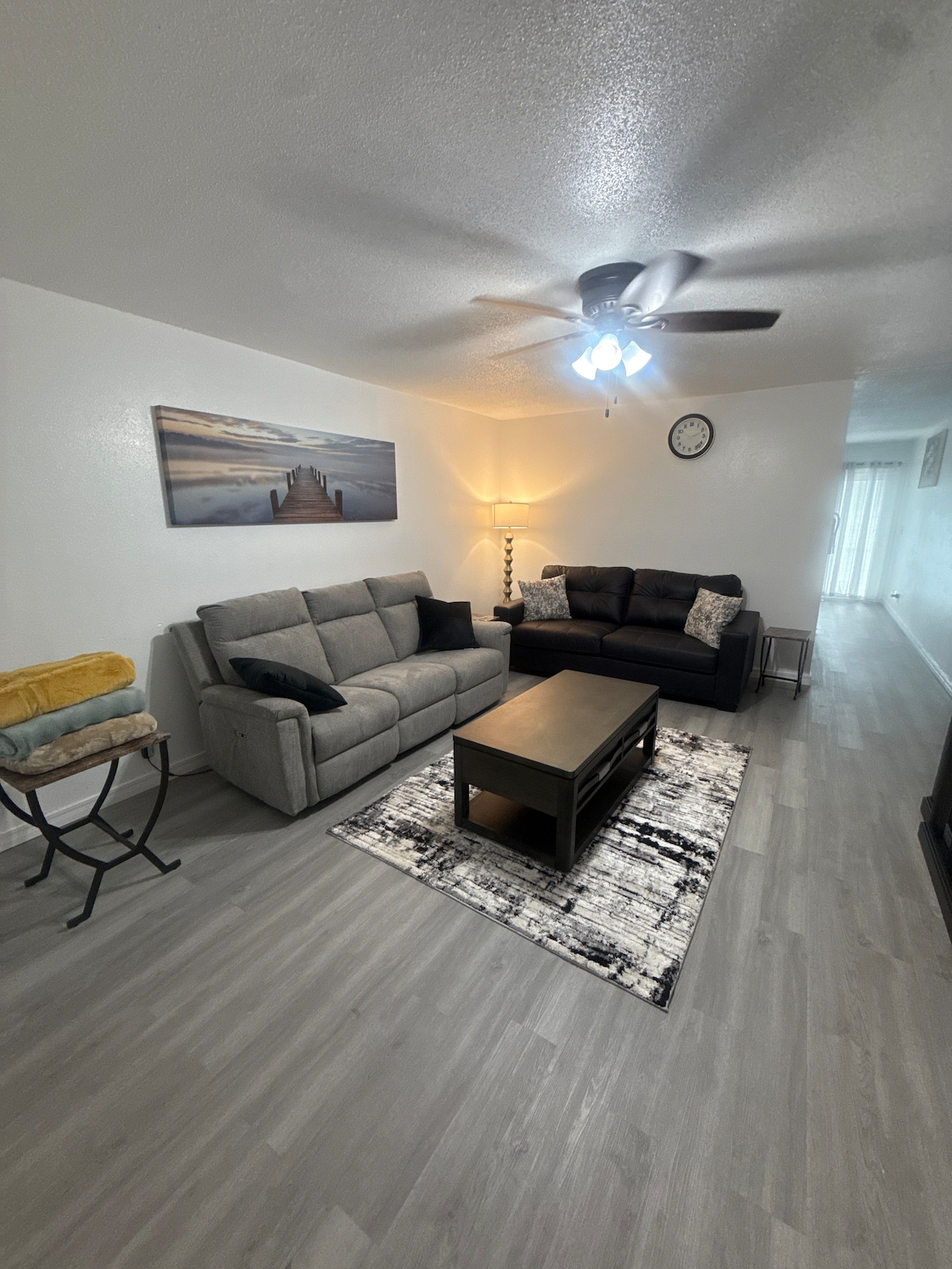 A few houses from Midtown’s pickle ball courts, you’ll find the Ivy Cottage. Charm and character are the highlight of this adorable property. The oversized sectional is the perfect place to cozy up and watch your favorite show on the Smart TV. Or serve dinner in the dining room with French doors that open to the patio. In the back you’ll find a hot tub, smart TV, couch, dart board, wine fridge, cornhole, etc. Plush beds await when you’re ready to call it a night. *Fireplace is not working.
