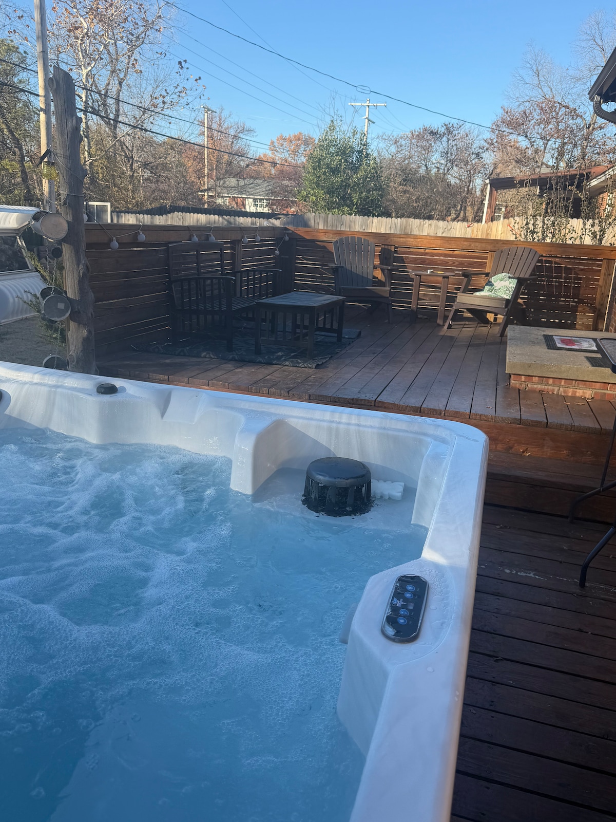 Settle into this beautiful, spacious home after a busy day exploring all the city has to offer with a dip in the hot tub on the beautiful deck with privacy blinds, fans, and outdoor string lights, or take a stroll down the award-winning Main Street of Broken Arrow--The Rose District (Walking distance from the home) and enjoy great shopping, excellent dining, and entertainment! ~Brand new everything with down goose feather comforters and pillows~