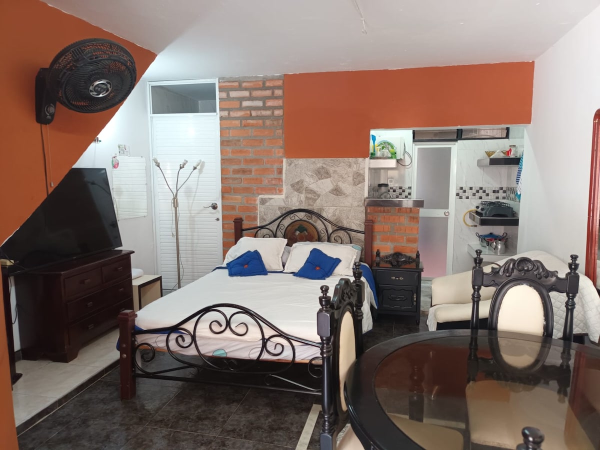 Monoambiente remodelado, con cocineta, horno microonda, iluminado, cuenta con una cama doble, living, comedor, nevera, agua caliente en la ducha. Servicio de Wifi. Queda sobre una avenida principal de la ciudad. Buena ubicación en un barrio familiar y a tan solo 5 minutos del centro. Diagonal se cuenta con una cancha de futbol, restaurantes, panaderías y supermercado. Sector residencial con excelente seguridad. En la Carrera 25 No. 12 B 16 del barrio El Jardín en Tuluá.