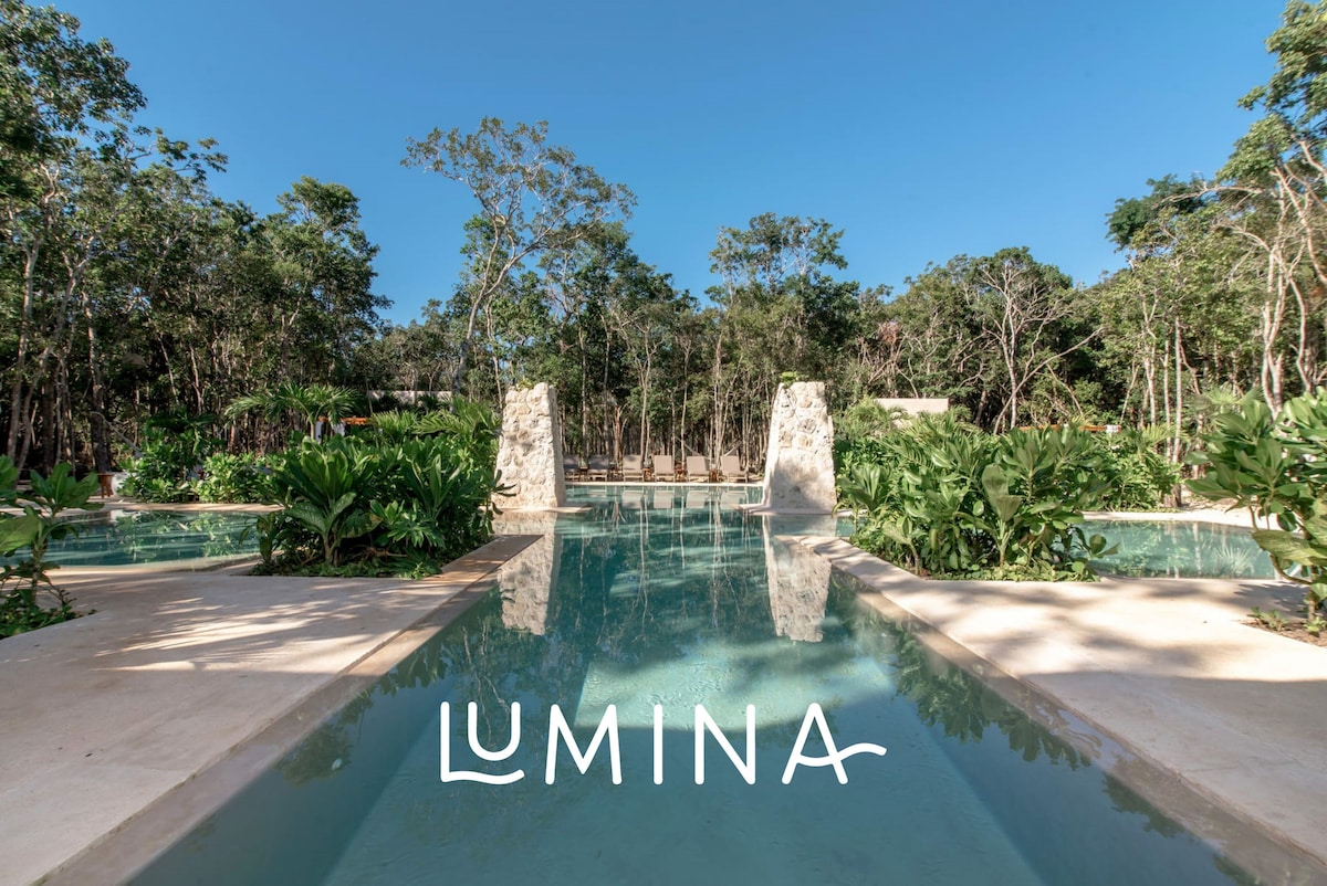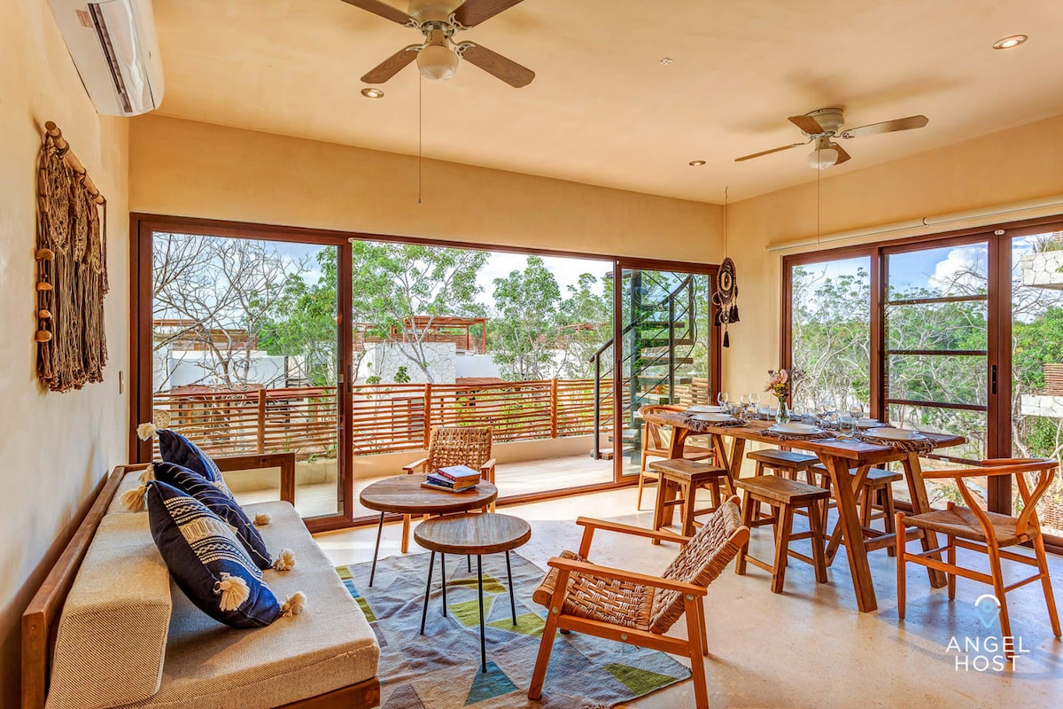 - Nature-inspired condo in a tranquil jungle development with a mystical vibe! - Enchanting surroundings with lounge spaces, pools & two unique cenotes - Amenities: co-working, gym, yoga loft onsite & just 8-min drive to town - Private balcony, lush views & private rooftop with dining, plunge pool & grill - FiberOptic Wi-Fi, laptop workspace, washer, dryer, and free parking