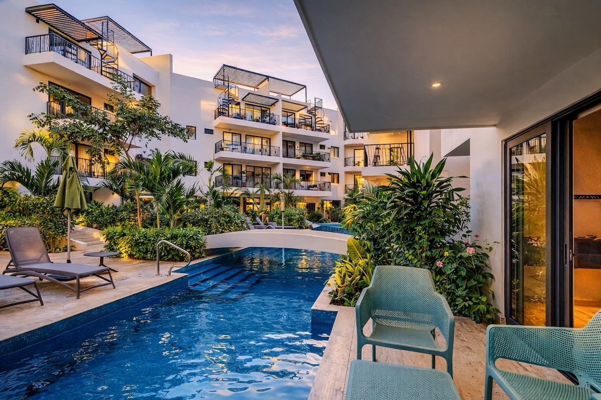 Welcome to a beautiful condo nestled within the vibrant La Veleta. This two-bedroom sanctuary is tastefully decorated, blending comfort, style, and functionality. The heart is a cozy living room that opens up to a totally private terrace and pool, providing all you need for a memorable stay. This apartment is inside boutique development Chukum Nah, with only 9 exclusive units inspired by Wabi-Sabi philosophy, to be defined as understated elegance with a focus on a less-is-more mentality.