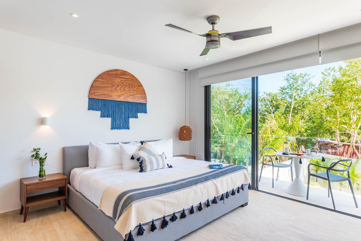 Welcome to this meticulously designed studio in vibrant Tulum Centro. Perfect for solo travelers or couples, it blends comfort, style, and convenience. Featuring a king-size bed, smart TV, a fully equipped kitchen, and a private balcony with garden views. Enjoy the rooftop pool, paddle tennis court, and access to vibrant art installations. Your reservation includes complimentary concierge service, and preferred access to some of the best beach clubs in Tulum.