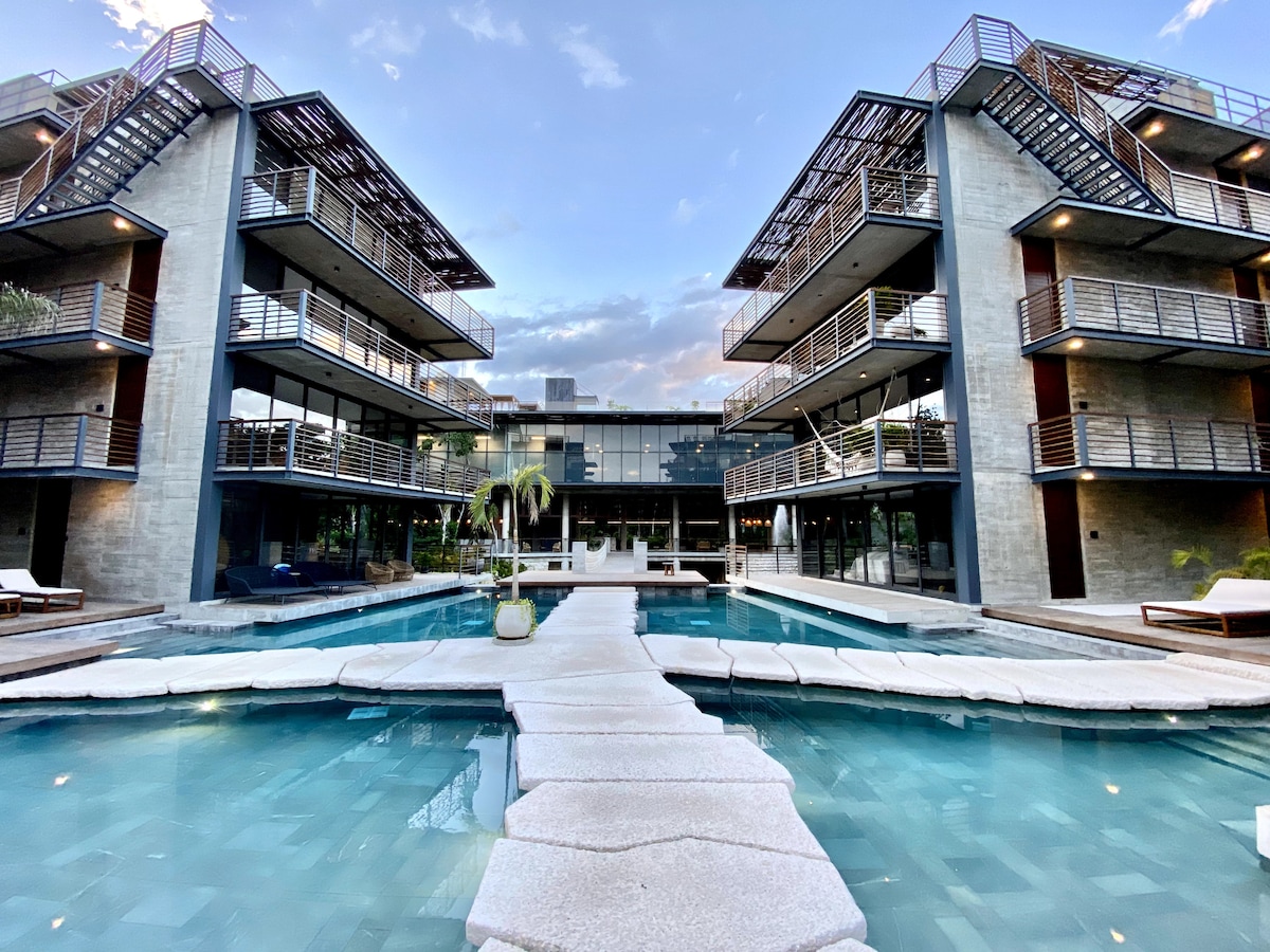 INCREIBLE LOFT DE 1 RECÁMARA CON DOBLE ALTURA Y ACCESO DIRECTO A LA ALBERCA. ✅Incluye 2 Bicicletas y Scooter ( checa condiciones ) ✅ATV’s (renta) Vive la experiencia Tulum en un espacio de diseño eco-friendly, rodeado de jardines y con acceso directo a la alberca principal desde tu balcón. Ubicado en una de las zonas más seguras y privilegiadas de Tulum, con amenidades inigualables, incluyendo un cenote natural, gimnasio totalmente equipado y un Rooftop Espectacular con Infinitypool.