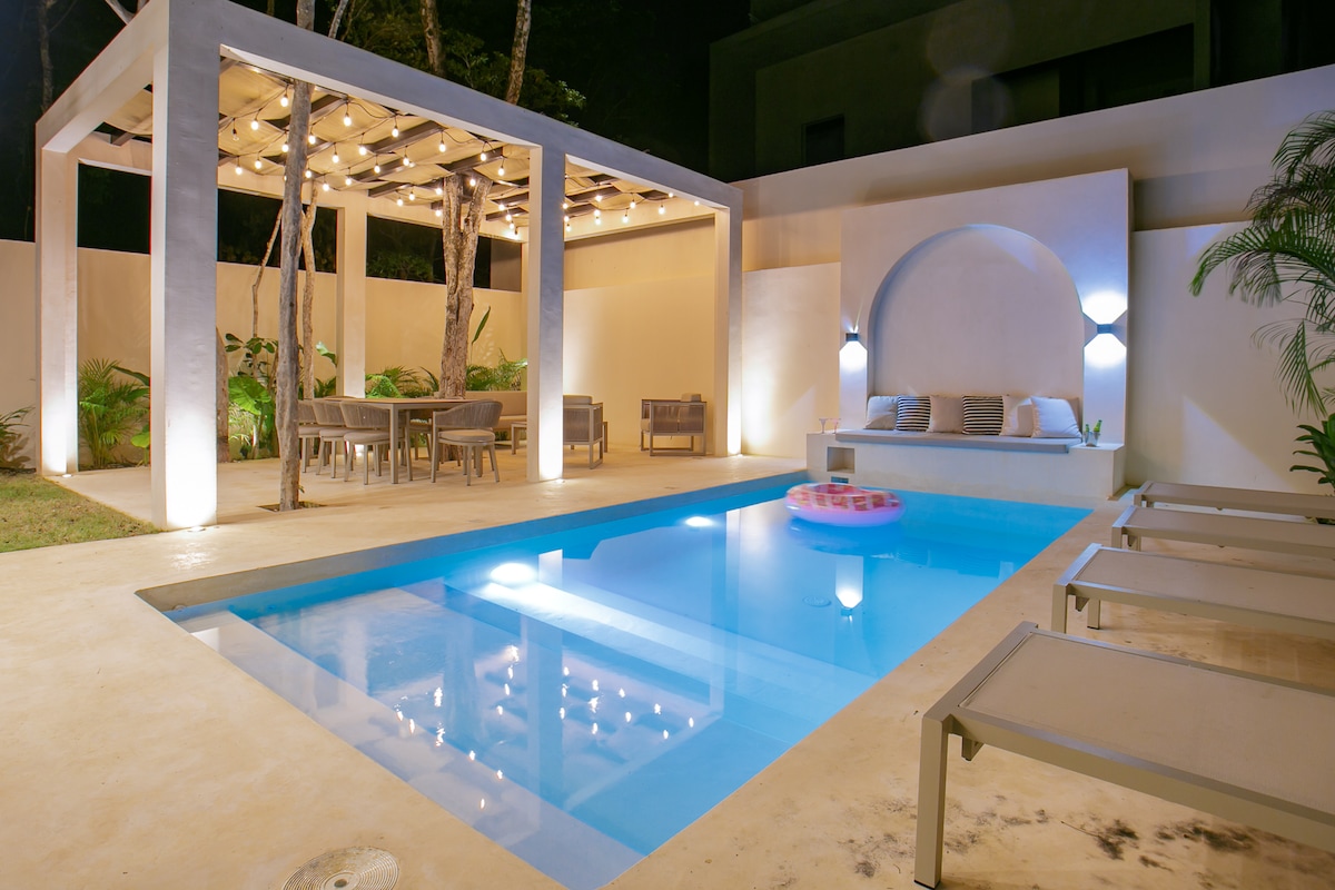 Experience the epitome of Tulum-style elegance at our Bohemian Chic Residence with style, comfort, and convenience. TEMPLIA is a unique, luxurious 2BR/2BA home with a private pool, outdoor hot tub, and award-winning Mayan-inspired design with fully equipped kitchen, concierge service, fast WiFi, and any additional service needed. Discover a harmonious blend of luxury and comfort perfect for travelers who value design, privacy, and quality.. Unforgettable moments await in refined Tulum living!