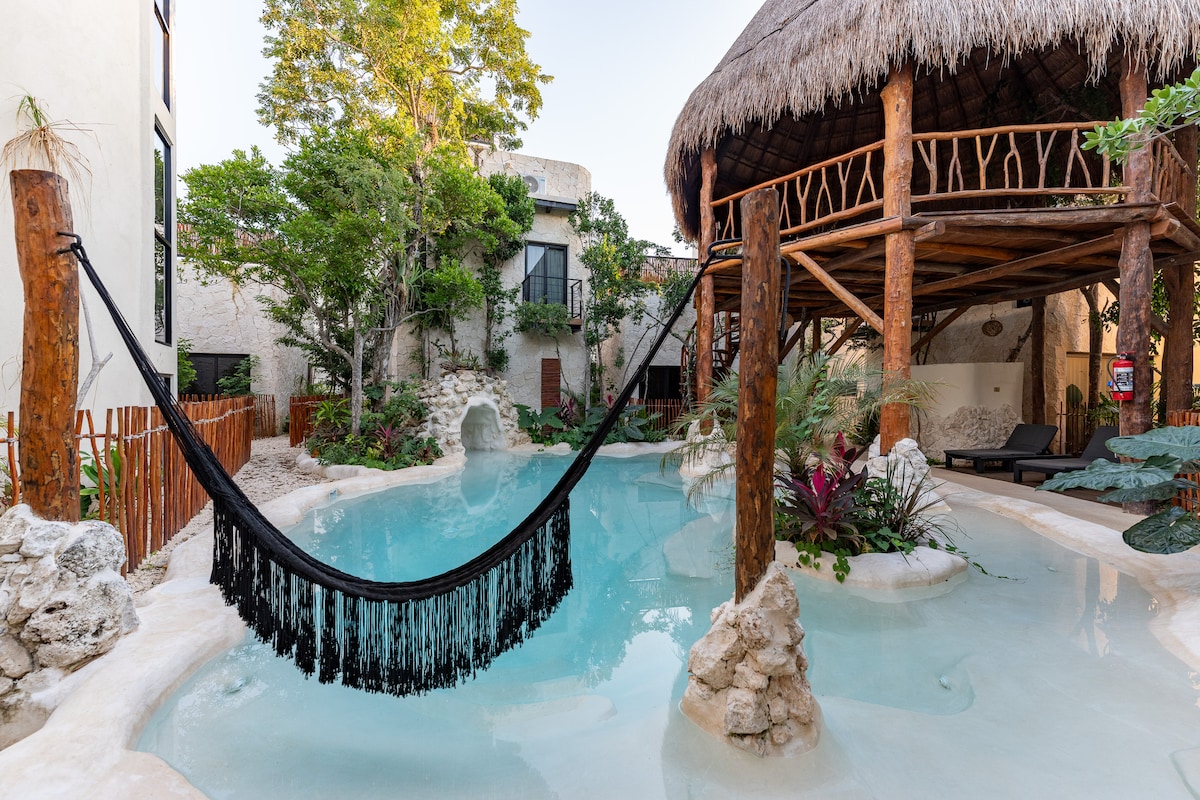 Welcome to your private slice of paradise! Nestled within the serene embrace of SIWA ELEVE Tulum, prepare to discover your exclusive jungle island, a true haven where tranquility meets luxury. Beyond the captivating wonders of Tulum, a sweet surprise awaits your arrival. Here, amidst the lush Mayan jungle, you'll find an intimate oasis designed for pure relaxation and rejuvenation. Step into a world where peace and privacy intertwine with the stunning natural beauty that surrounds you.