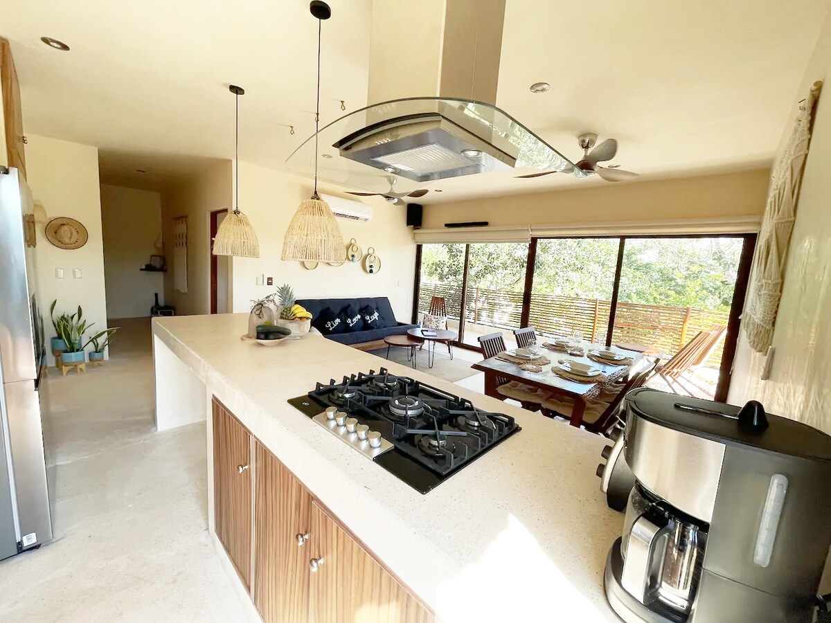 Villa Selva, our recently remodeled, modern and exquisitely designed home, is walking distance to Tulum Town Center, yet surrounded by nature. The Villa features a beautiful open space with a fully equipped kitchen, dining area, living room, a peaceful private pool area and lush tropical garden, 3 bedrooms, 4 full bathrooms and a big wood terrace. This spacious,high end furnished villa is meant to offer comfort and convenience and is perfect for a big family or group. Concierge & Security 24/7
