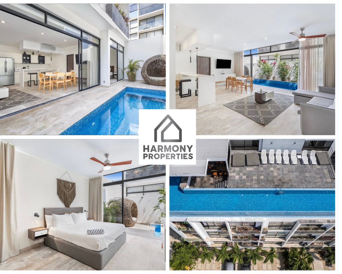 Remodeled Villa with PRIVATE POOL / JACUZZI & BAR ( MAY 2022) is located in Aldea Zama the most exclusive residencial area in the middle of town and the beach of Tulum, with all services . It's has you own private pool with hamacas, terrace Bar with a sunset view and a private jacuzzi perfect for a romantic night. We have the fastest Fiber Optical Internet in the region. Concierge service included.