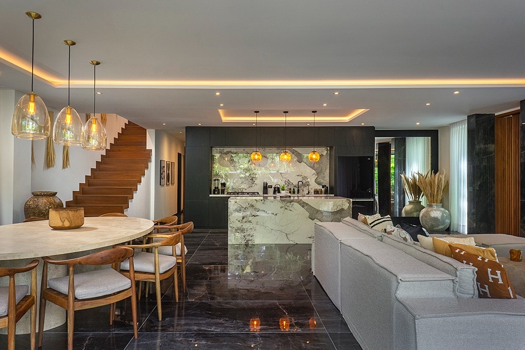 This luxurious private villa is flooded with natural light thanks to its large windows, making you feel fully immersed in the jungle while enjoying ultimate home comfort. Relax in the living room jacuzzi as you watch your favorite football matches or shows. Bask in the sun on the rooftop solarium with lounge chairs, and sip cocktails by the pool for the perfect chill vibe.