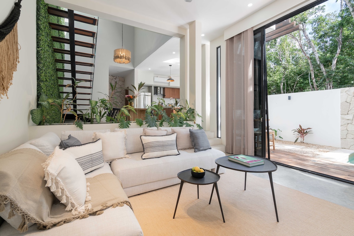 Extraordinary Villa with * PRIVATE SWIMMING POOL * located in one of the most well known neighborhoods in Tulum. You will spend fabulous days in the pool area, sunbathing or relaxing in the covered terrace reading a book or having a really good time with your family. The 3 modern bedrooms with A/C, comfortable beds, luxe sheets and 4 pillows per bed will make you have a relaxing night. How about a hot bath in the ensuite * bathtub * with warm lighting for a relaxing time. Enjoy!!