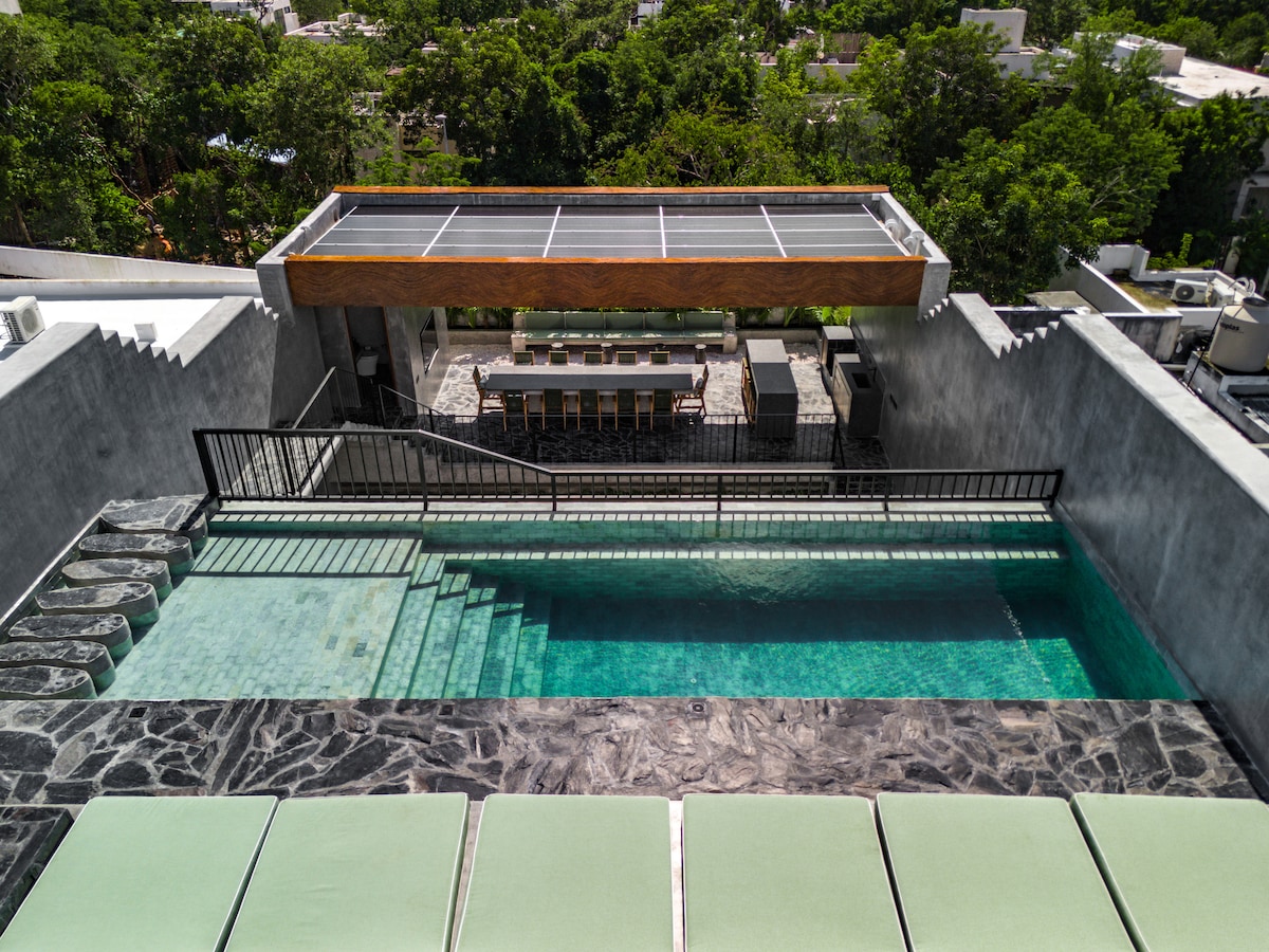 CASA BOKO | Jungle Luxury Escape – 10 min from Beach & Top Restaurants – 6 Bedrooms • Sleeps up to 16 Guests – Safest neighbourhood in Tulum – Private Rooftop Pool with Panoramic Jungle Views – Striking Architectural & Interior Design – A/C in All Bedrooms & Common Areas – Fast, Reliable Wi-Fi – Chef & Premium Concierge Services Available