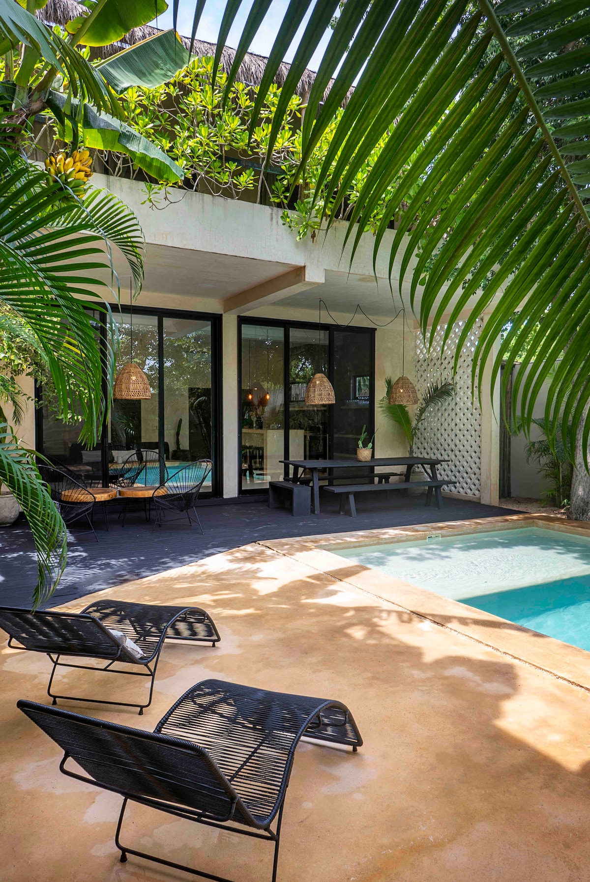 Experience the magic of Tulum in a cozy eco-home nestled in the jungle! Perfect for groups, with 4 comfy bedrooms, a PRIVATE pool and patio, fast Wi-Fi (200mB), and all modern comforts. Just minutes from dreamy beaches, Mayan ruins, and vibrant nightlife. The perfect escape to relax, explore, and connect with nature. Your unforgettable Tulum getaway starts here! Comfort, nature, and adventure all in one unforgettable stay. Book now and fall in love with Tulum!