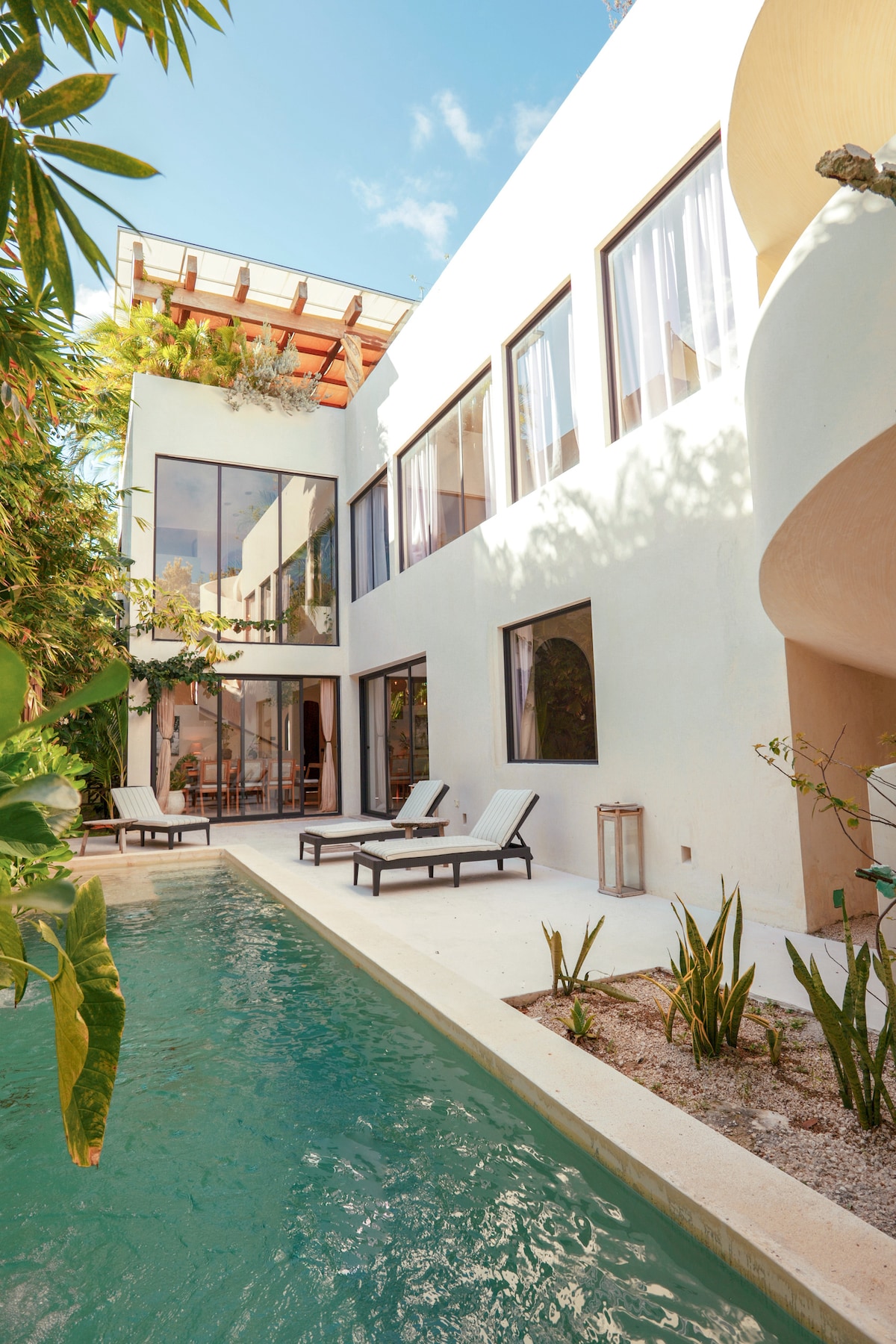 • GREAT LOCATION! 10 min to Tulum sandy beaches • 24/7 SECURITY - Gated Community • VIP Concierge Service (complimentary) • Mid-stay cleaning for all stays (complimentary) • 4 Bedrooms with bathrooms (2 Kings & 2 Queens), each with their own en-suite bathrooms • Sleeps up to 9 guests • PRIVATE POOL • ROOF TOP • A/C & Ceiling fans in every room • Fiber Fast Internet connection • Fully equipped kitchen • Featured on Dezeen, AD, Vogue & Elle Decor.