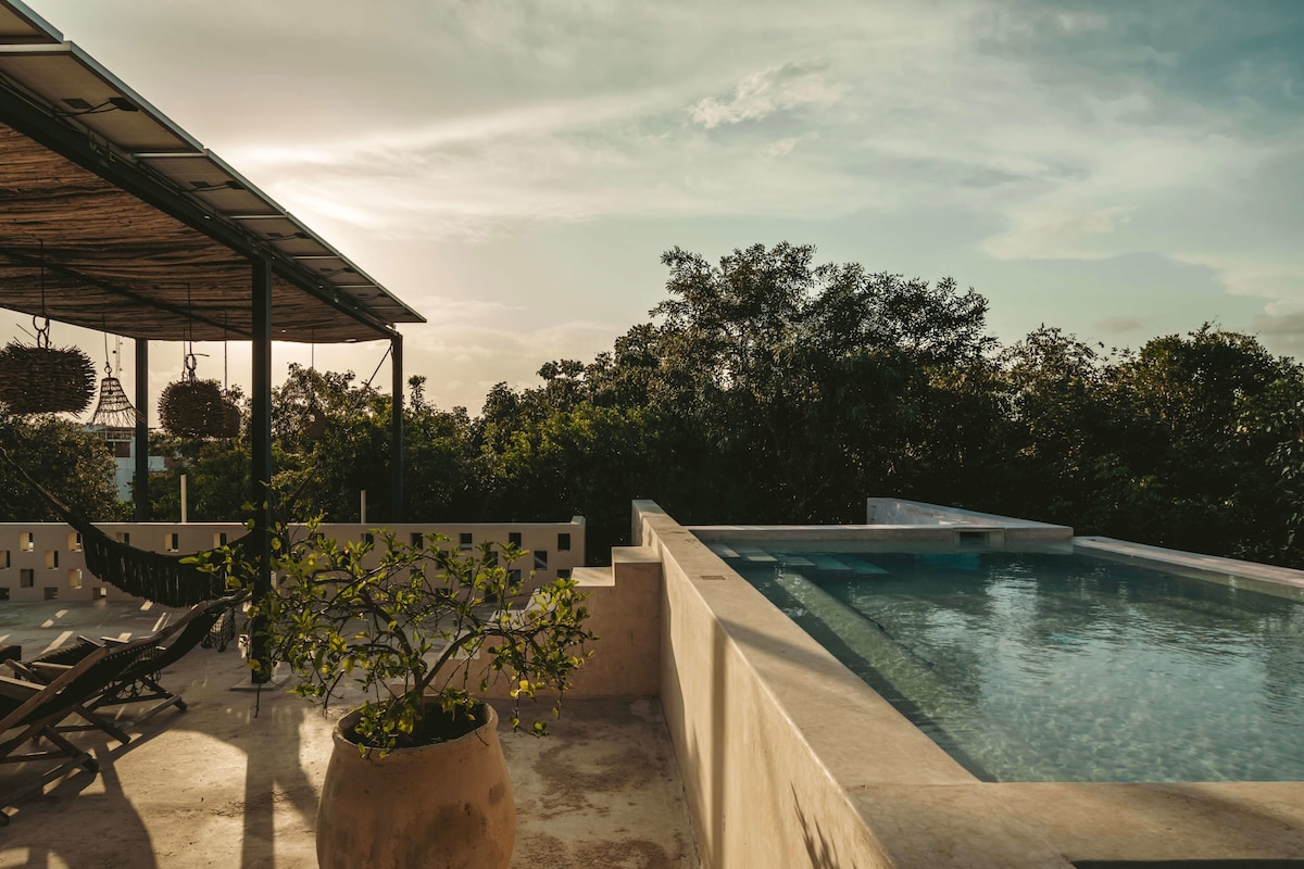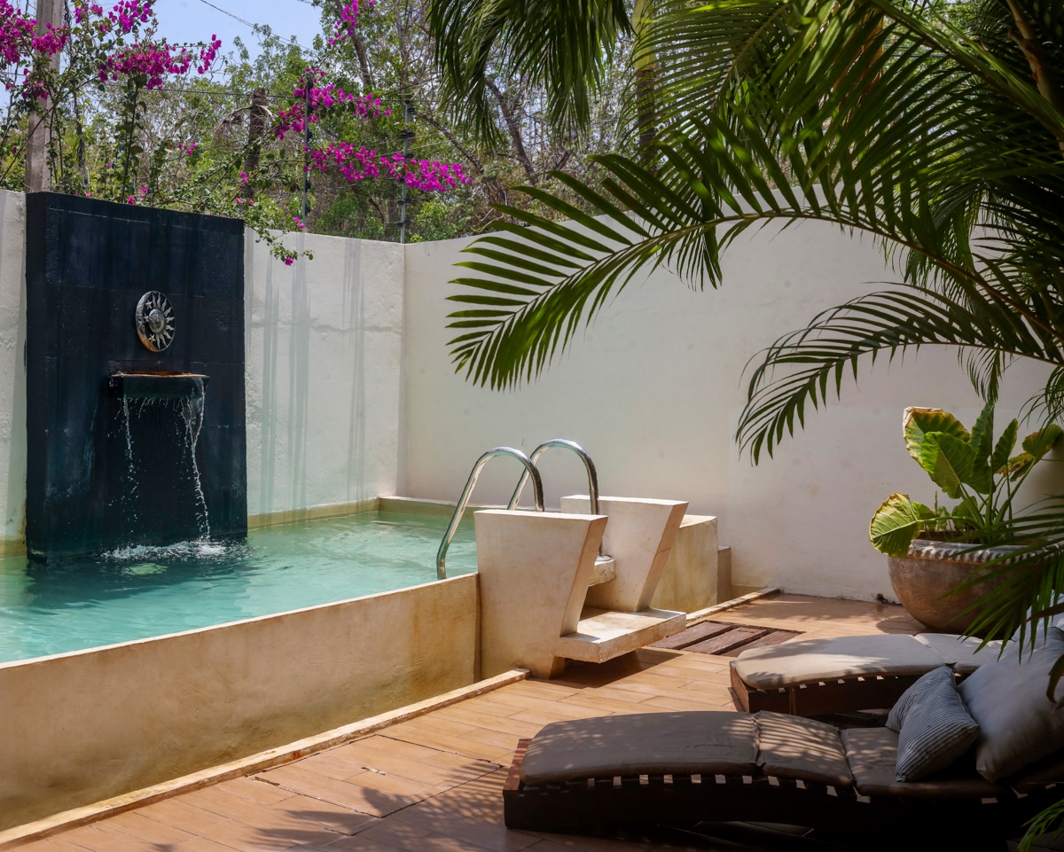 在图卢姆这间迷人的公寓的私人游泳池中畅游
