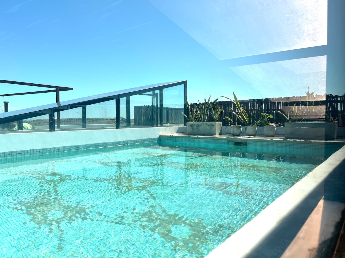 在图卢姆这间迷人的公寓的私人游泳池中畅游