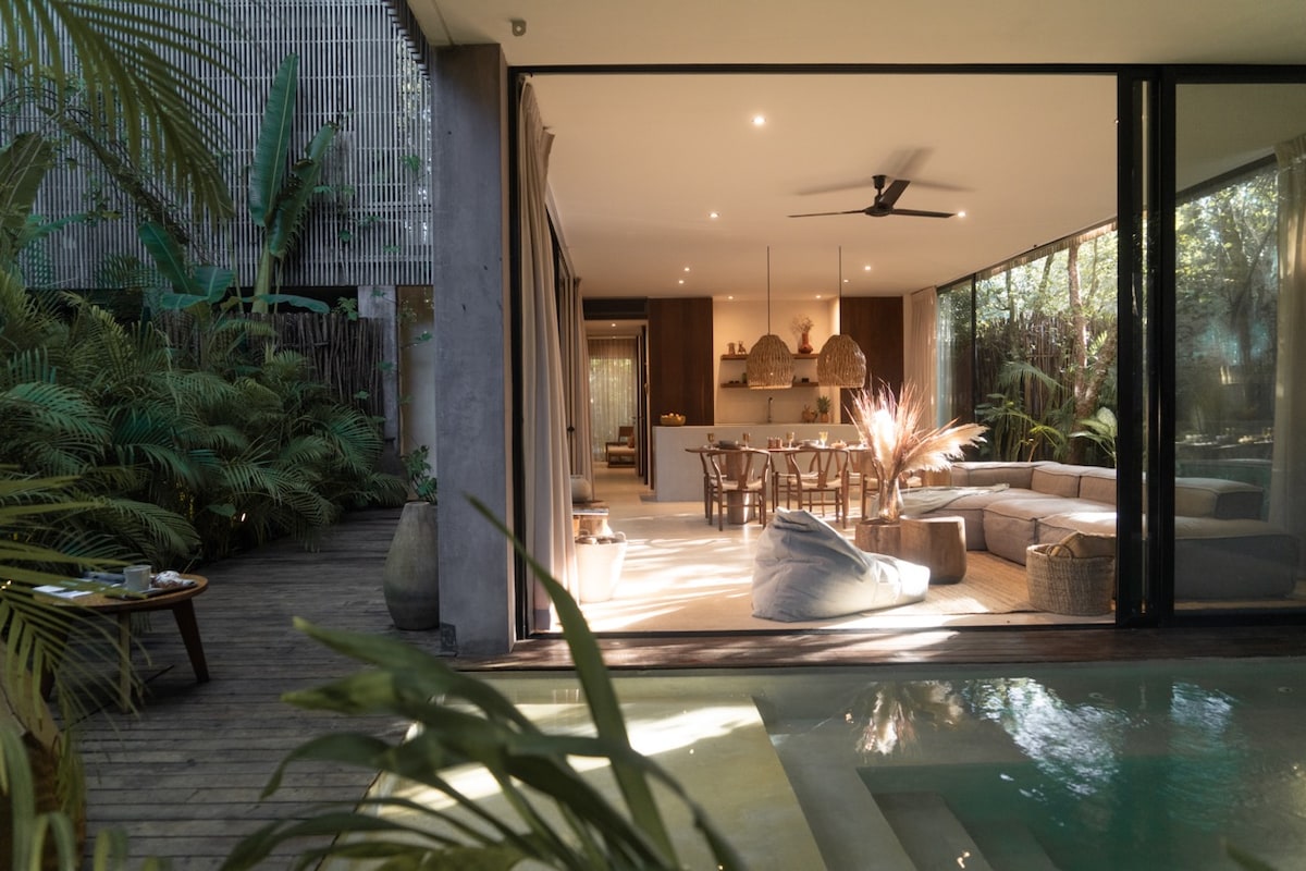 浪漫温水泳池别墅|时尚图卢姆度假胜地