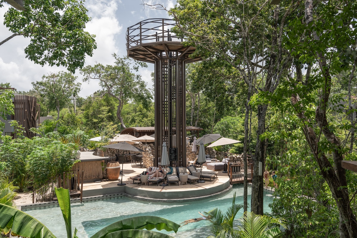 浪漫温水泳池别墅|时尚图卢姆度假胜地