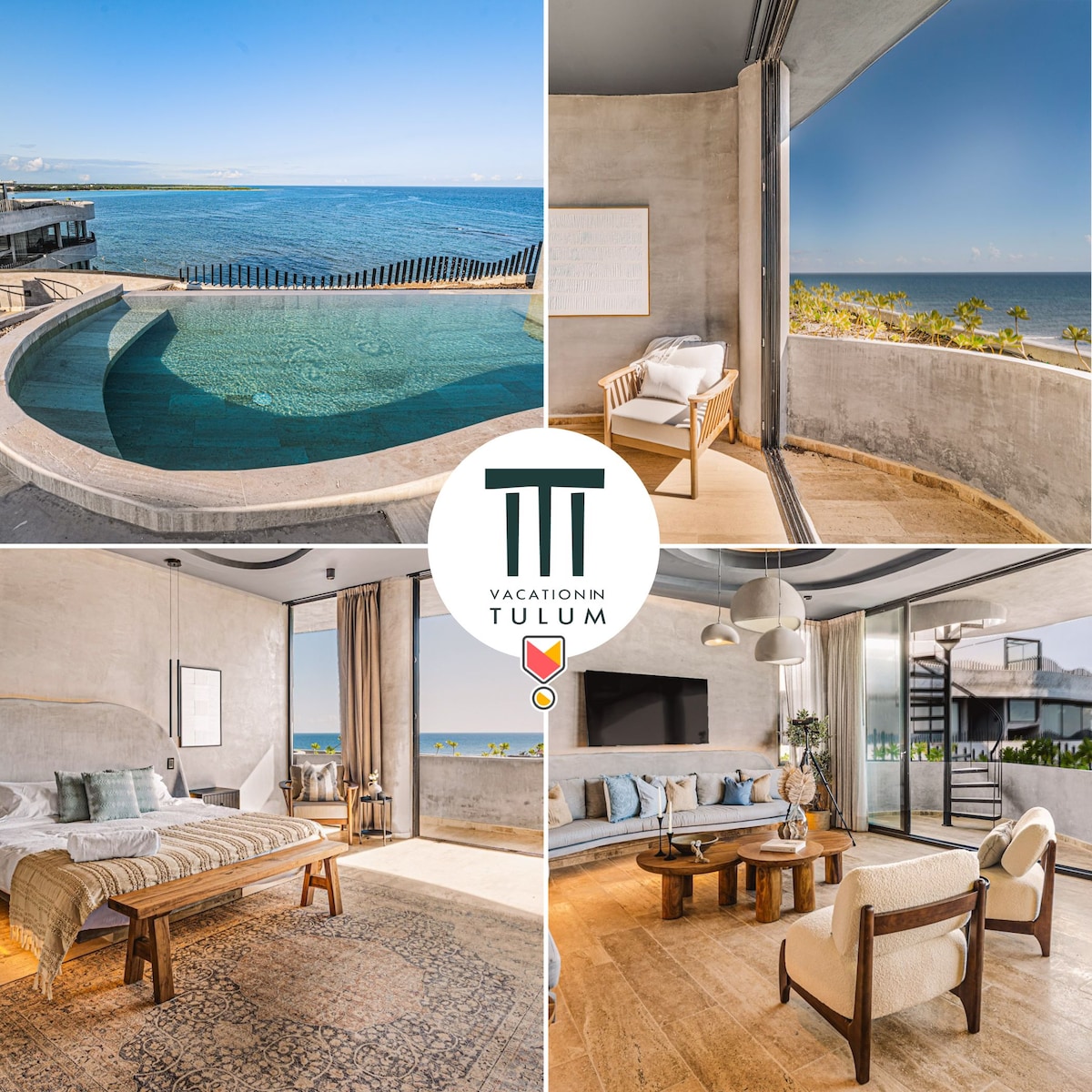 Enjoy and experience of Tulum vibe designed into Villa Kiin by Casa Xuul Tulum. Chef service and daily cleaning included (except Sundays & Mexican holidays), Starlink Internet and power generator back up in case of a power outage. Breathtaking ocean front Villa Kiin with views of turquoise waters and soothing ocean breeze, located in the area of Tankah, Tulum. Designed to be an ideal gathering place for friends, family and special occasions.