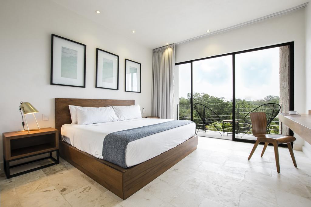 Enjoy serenity in our Zen Oasis Retreat Suite, with beautiful views of the infinity pool and cenote. Each studio features a comfortable king-size bed, safe, bathtub, rain shower, minibar, air conditioning, ceiling fan, and a small kitchenette. As a guest, you will have exclusive access to our weekly wellness program and private cenote, perfect for unwinding. You will also be able to enjoy our pool, terrace, restaurant, and bar, making your stay a unique experience.