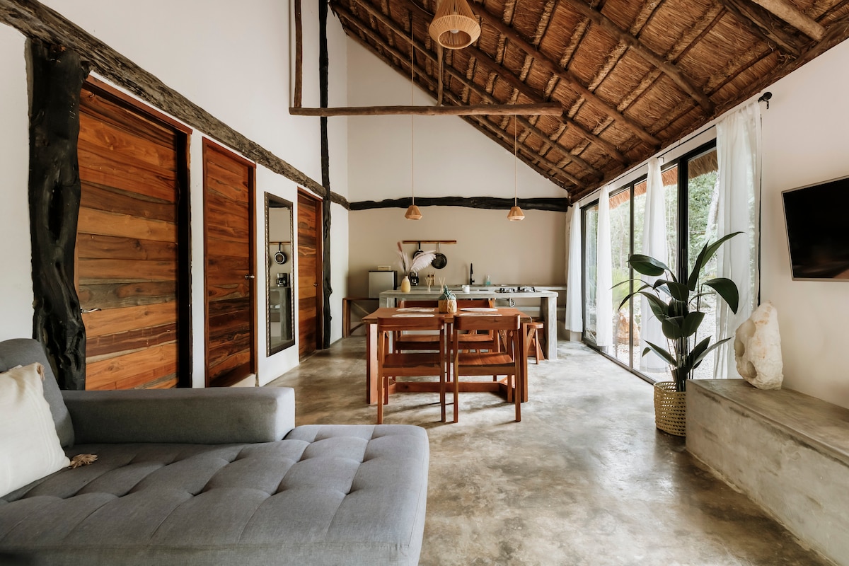 Escápate a un rincón mágico de la selva, donde la naturaleza es la protagonista. Nuestro pequeño hotel cuenta con solo 5 cabañas, diseñadas por su propietario; un apasionado italiano que vive aquí y cuida de cada huésped. Por las mañanas disfruta de un delicioso desayuno incluido. Por las noches déjate conquistar por la cocina del dueño, que abre su restaurante. Aquí encontrarás paz, autenticidad y la experiencia de vivir la selva de Tulum de una manera íntima y auténtica.