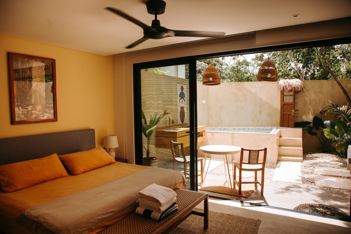 Escape to your Jungle Retreat. Unwind in ultimate privacy at our 1 bdrm penthouse. Relax on your own private rooftop, complete with a refreshing plunge pool (unheated). Nestled in the jungle, this secluded heaven offers a serene escape away from the crowds. Just a short drive from Tulum Pueblo (10 mins) and the beach (20 mins), our penthouse is the perfect blend of tranquility and convenience. Please note: access is through rough unpaved roads. Just drive slowly. Renting a car is recommended
