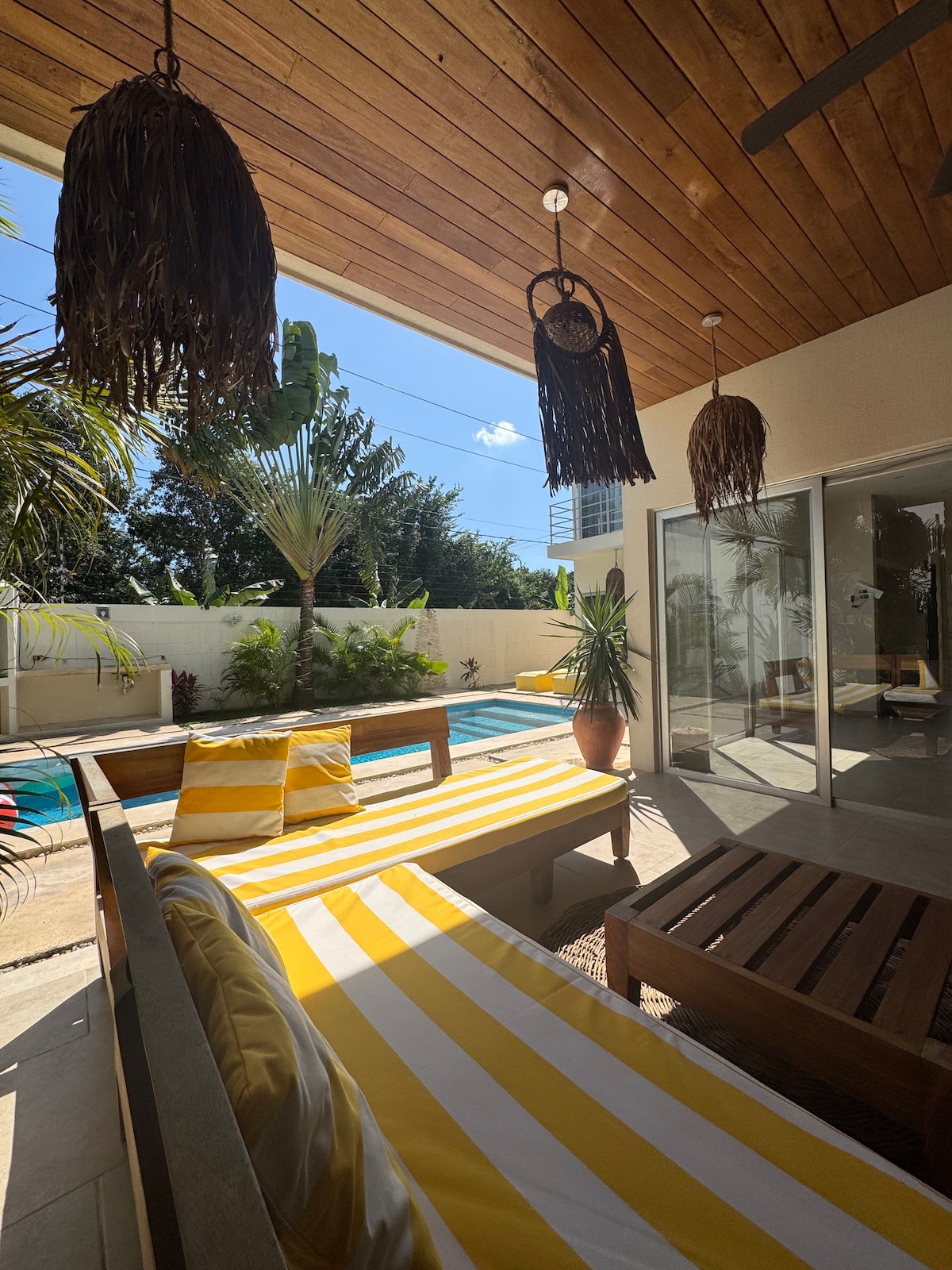 Home is located in LA Veleta. 7 minutes from downtown & 15 from beach We are committed to cleanliness and sterilization during these difficult times, rest assured that we have cleaned home from top to bottom, to ensure your safety!!! This quaint bohemian sheik home is 5 minutes from town and nestled in Mayan jungle views from upstairs pergola. Home is exclusively for your group, with private pool, 4 free bikes that come with home.