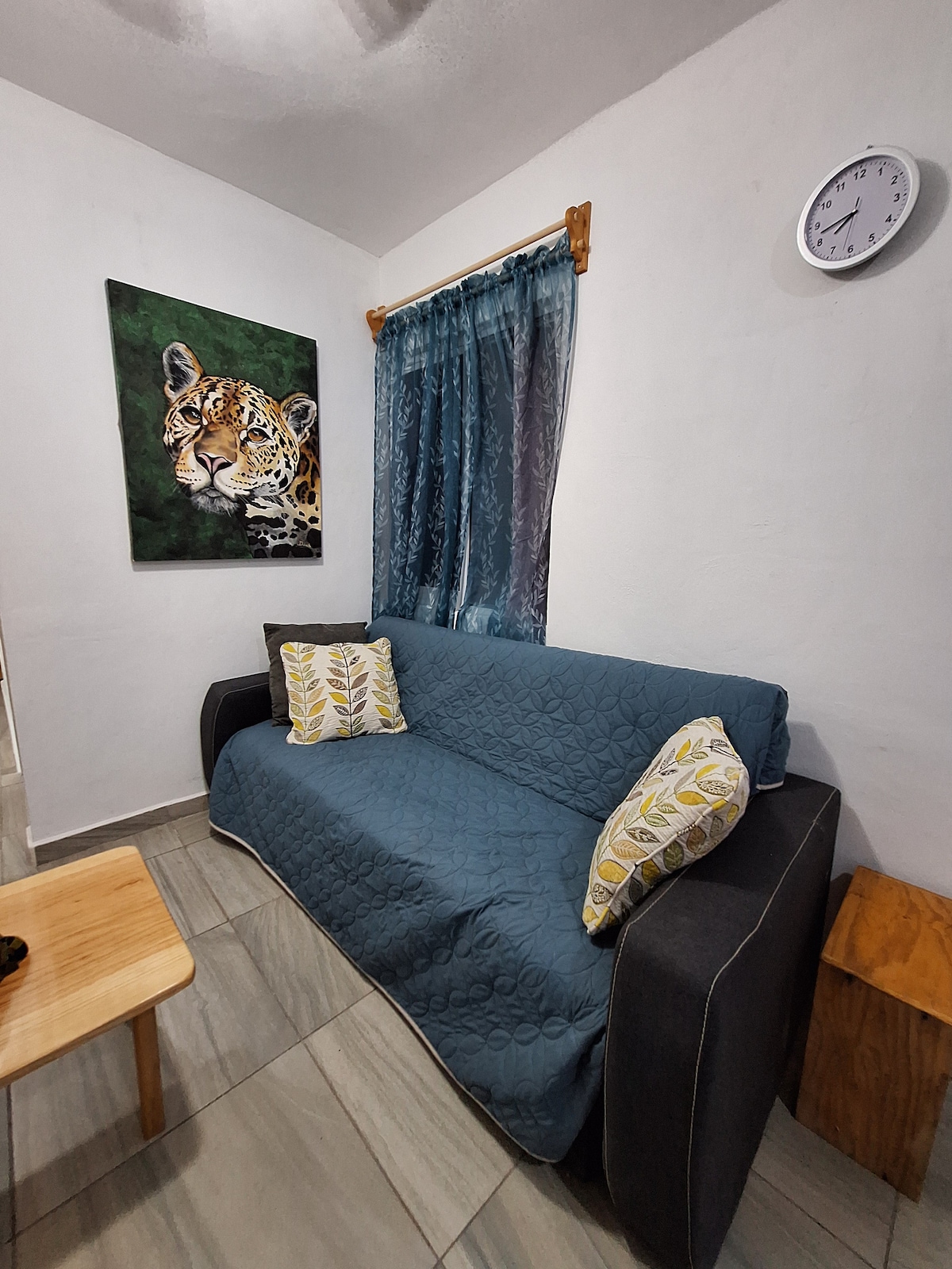 Preciosa habitación ubicada en el Fraccionamiento Aldea Tulum, a 7 km- 11 min del centro de Tulum (en auto). El lugar está rodeado de cenotes, lagunas, selva y a 15 min de la playa de Tulum. Estamos a 30 min del nuevo aeropuerto de Tulum y a 5 minutos caminando del Festival Zamna. El entorno es seguro y es ideal para parejas, familias, mujeres viajeras y nómadas digitales. La habitación comparte baño y cocina equipada , Internet 155 Mbps, el agua solo es fría, hay estacionamiento en la calle.