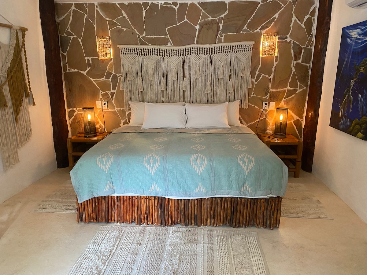 ¡Bienvenido a nuestro exclusivo oasis en Tulum! Privacidad y comodidad se combinan en un piso completo con tres amplias habitaciones. Toda la planta es solo para tu grupo, lo que garantiza máxima privacidad. Cada habitación tiene cama king, aire acondicionado y balcón privado. La ubicación es incomparable. Nos encontramos a solo dos minutos a pie de las playas más hermosas de Tulum, famosas en todo el mundo por su arena blanca y aguas cristalinas.