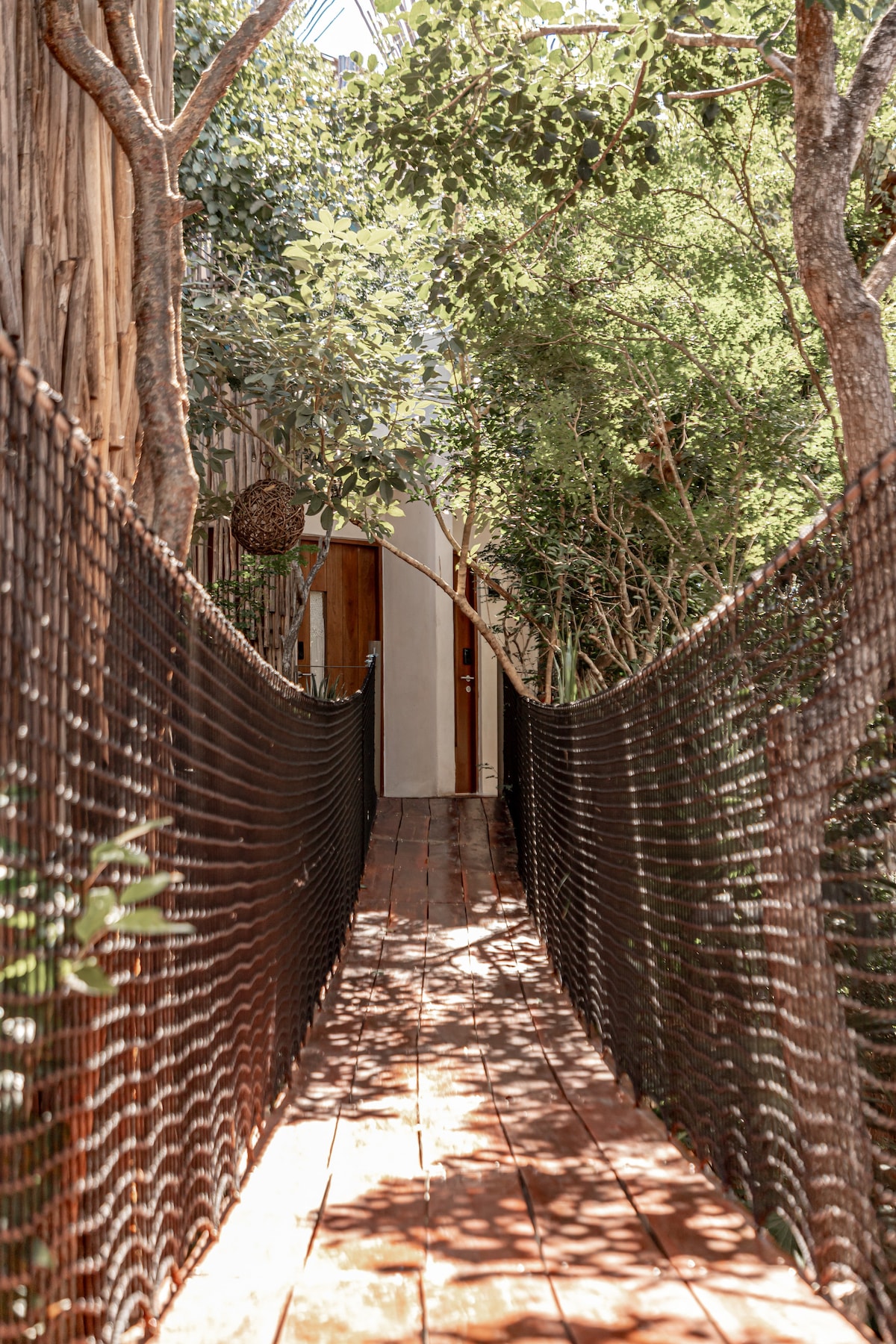 Treehouse Suite 95m2 / 1,022SqFt Experience peace and comfort among the treetops of the Mayan Jungle. These amazing suites are set just steps from the beautiful Tulum Beach, set up high in order to better catch the breeze of the ocean, the sound of the waves and sunsets to die for. King size bed, A/C, in-suite private bathroom with organic toiletries, ceiling fan, private plunge pool on the ground floor and a lookout tower to relax, meditate or just catch glimpses of the ocean and the sunsets.