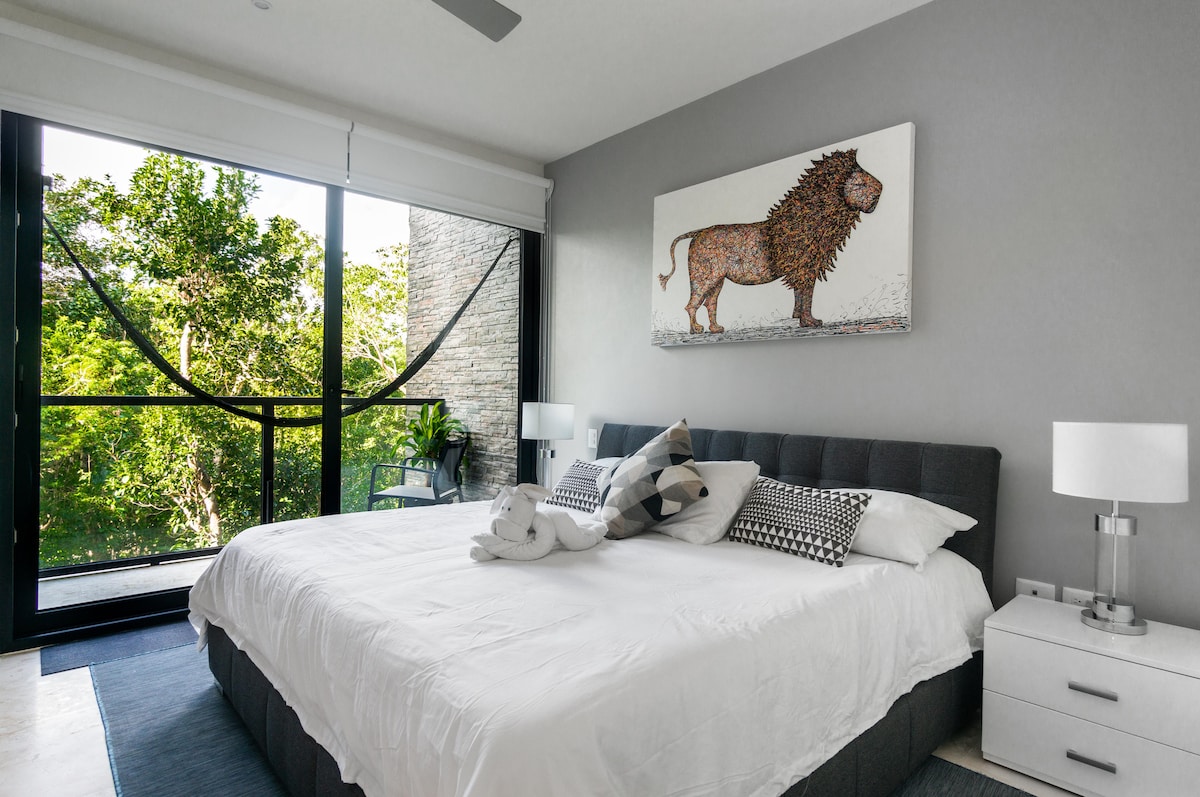 PRIVATE ROOFTOP w JACUZZI Welcome to Tulum's only upscale development with natural cenote, world class amenities, and strategic location right between Tulum Beach and Centre, walk to Tulum's only supermarket. ● Private Cenote ● Rooftop Pool ● Private Rooftop w Private Jacuzzi ● 6+ Lagoon Pools ● Panoramic views ● Big Gym ● 5+ Hot Tubs ● Jungle Circle for Walks ● Very Fast Wi-Fi ● Coworking Office ● Bathroom Essentials Provided ● Towels Provided ● Free Garage Parking ● 24/7 Security