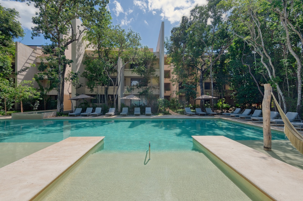 Surrounded by lush palms, this unique accommodation offers the perfect blend of comfort and convenience. Located just 7 minutes from the beach, La Veleta, and 10 minutes to downtown, you’ll have easy access to everything Tulum has to offer. Enjoy one of the largest pools in Tulum, a free beach shuttle, and a fully equipped gym. The complex also features a spa, on-site restaurants, and a convenience store. We have everything you need for a seamless and relaxing stay.