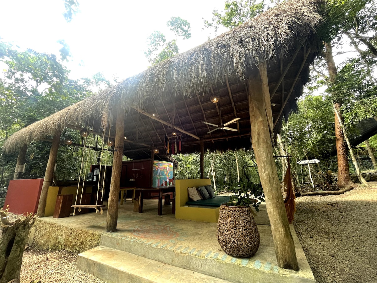 Gorgeous rustic cabin right in the middle of the jungle, steps away from the beach - in the heart of Tulum's famous strip. Experience the beauty and calmness of the nature in this comfortable and spacious 360° cabin.