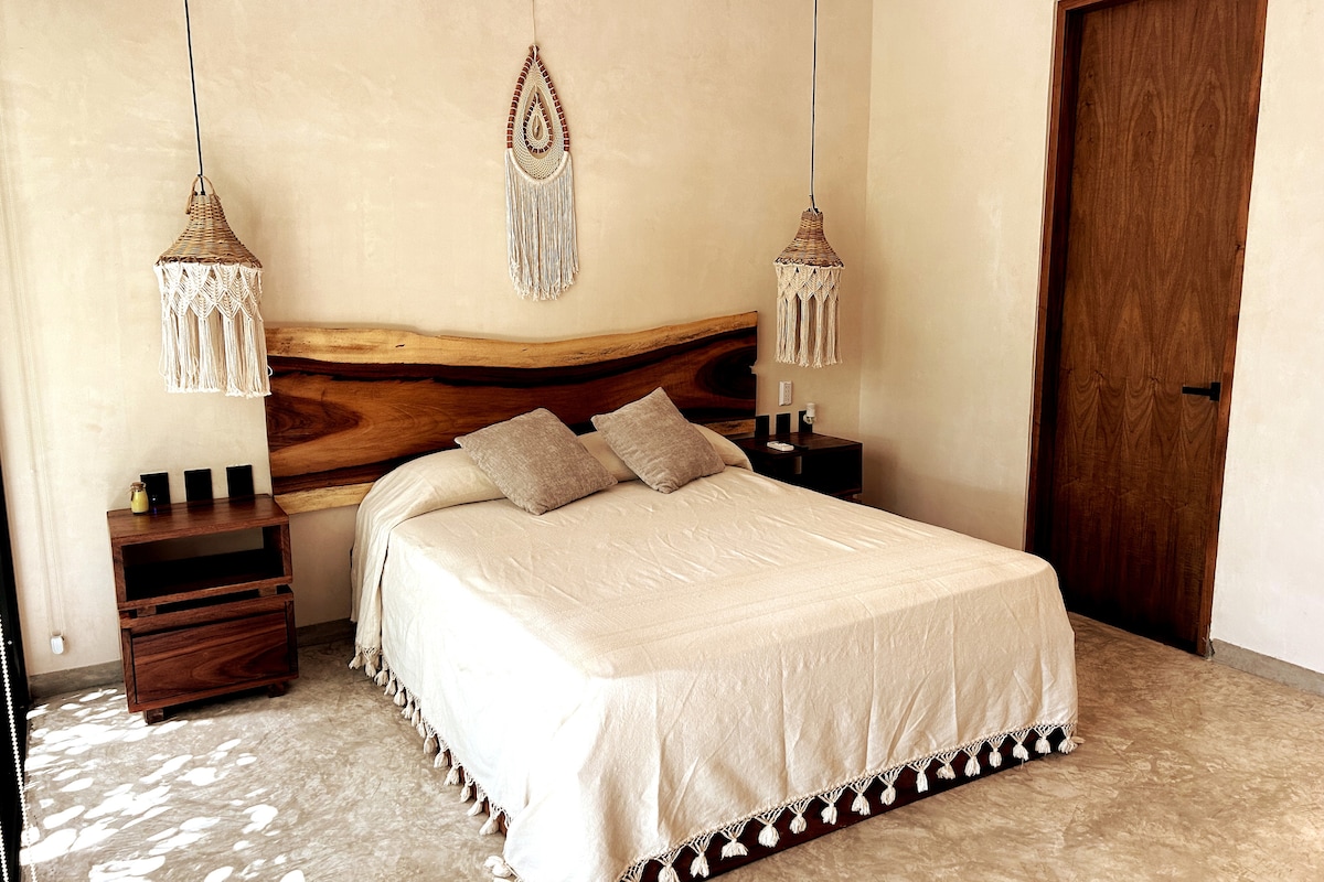 Art beneath 4 walls, but there are no limits within our new 1 BR luxury villa. As part of one of the neighborhood's most luxurious and photo-worthy condos, our 1 bedroom apartment features: ☆ a private terrace featuring a jacuzzi complete with a puff sofa and bridge entrance. ☆ State of the Art boho-Chic decor. ☆ Access to one of Tulum's best condo's amenities, including fully equipped and air-conditioned gym, 2 pools, spa room and co-working rooms. Keep on reading for the full list!