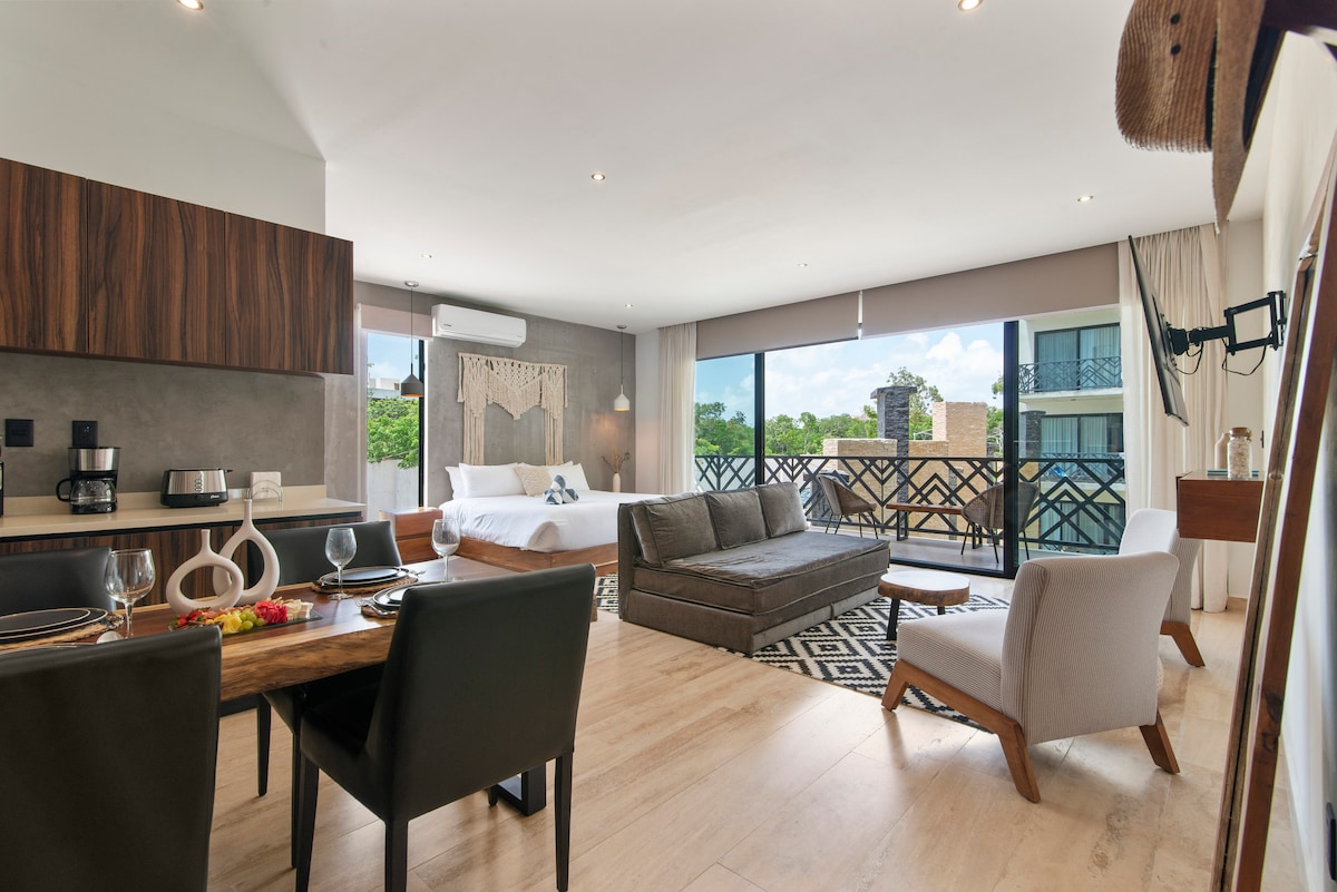 Welcome to Kaoba! Wake up to the sound of waves in this oceanfront studio, nestled between the sea and mangrove in exclusive Tankah Bay, Tulum. Serene, stylish, and set directly on a private beach—this space offers stunning views from the condo and the rooftop, kayaks to use during your stay, a pool overlooking the ocean, another rooftop pool, an outdoor kitchen and more. Thoughtfully designed for disconnecting from life's busy moments - nature, calm, and comfort, seamlessly combined.