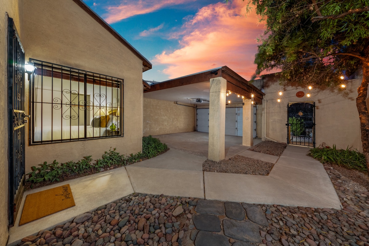This 100-year-old stucco earthen row house with original wood floors and charming thick walls features a private patio and dedicated office space. One of 4 units on the property down a quiet residential alley street in Barrio Santa Rosa, 2 blocks from the renowned historic Barrio Viejo lined with the largest collection of 19th-century bright colorful adobe buildings in the US. Walking distance from hip restaurants, a small-batch coffee roaster, and an intimate mezcal bar that hosts live music.